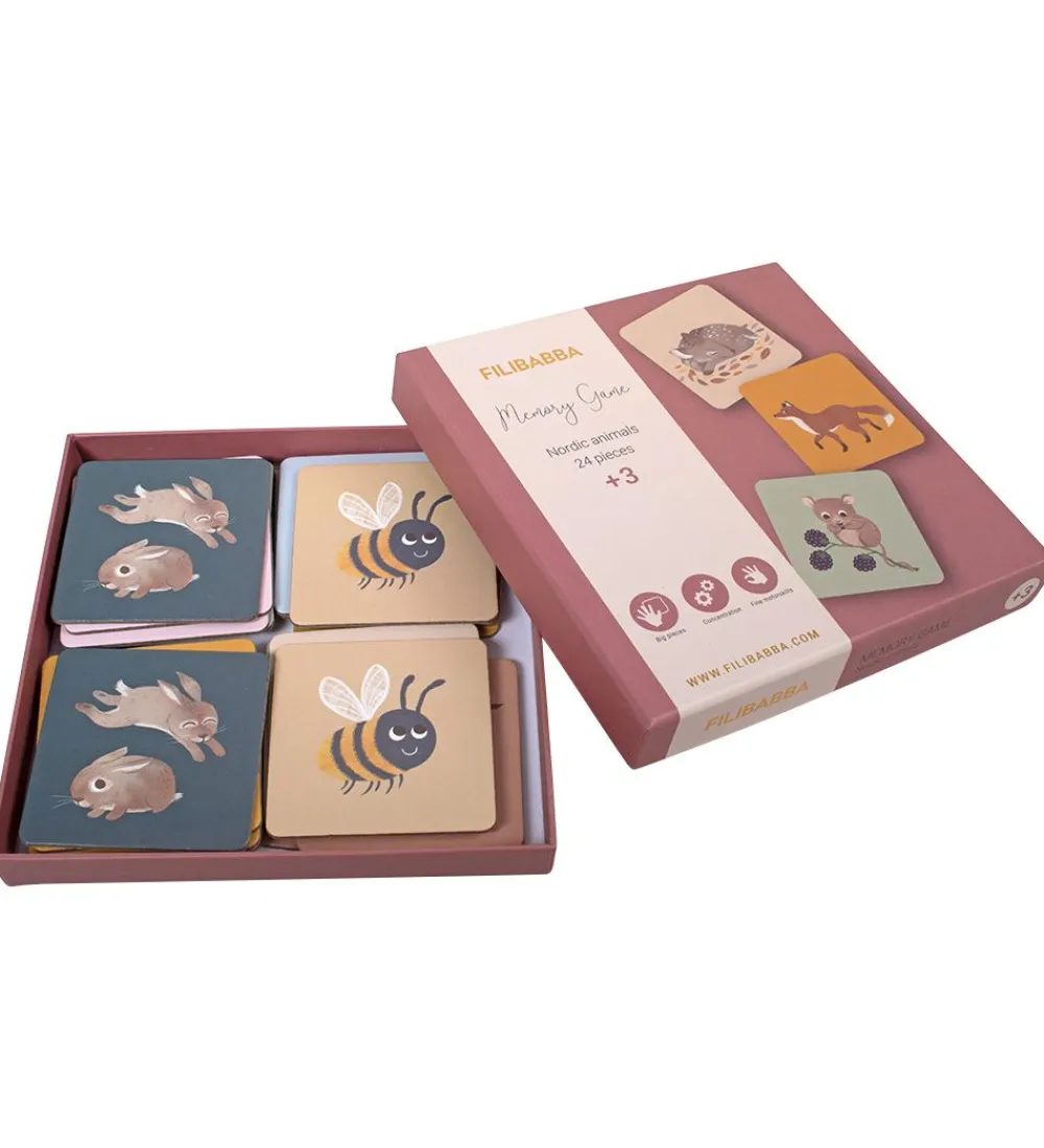 Filibabba vendespillet består af 24 brikker, hvor de passer sammen i par. Spillet er morsomt for hele familien, hvor koncentrationen virkelig bliver sat på prøve. Spillet gælder om at huske hvor kortene med de forskellige motiver ligger, så man kan finde to ens. Den, der til sidst har fundet flest kortpar, er den heldige vinder af spillet.