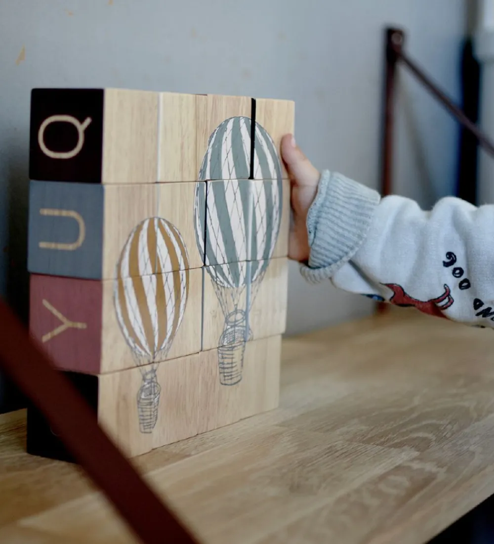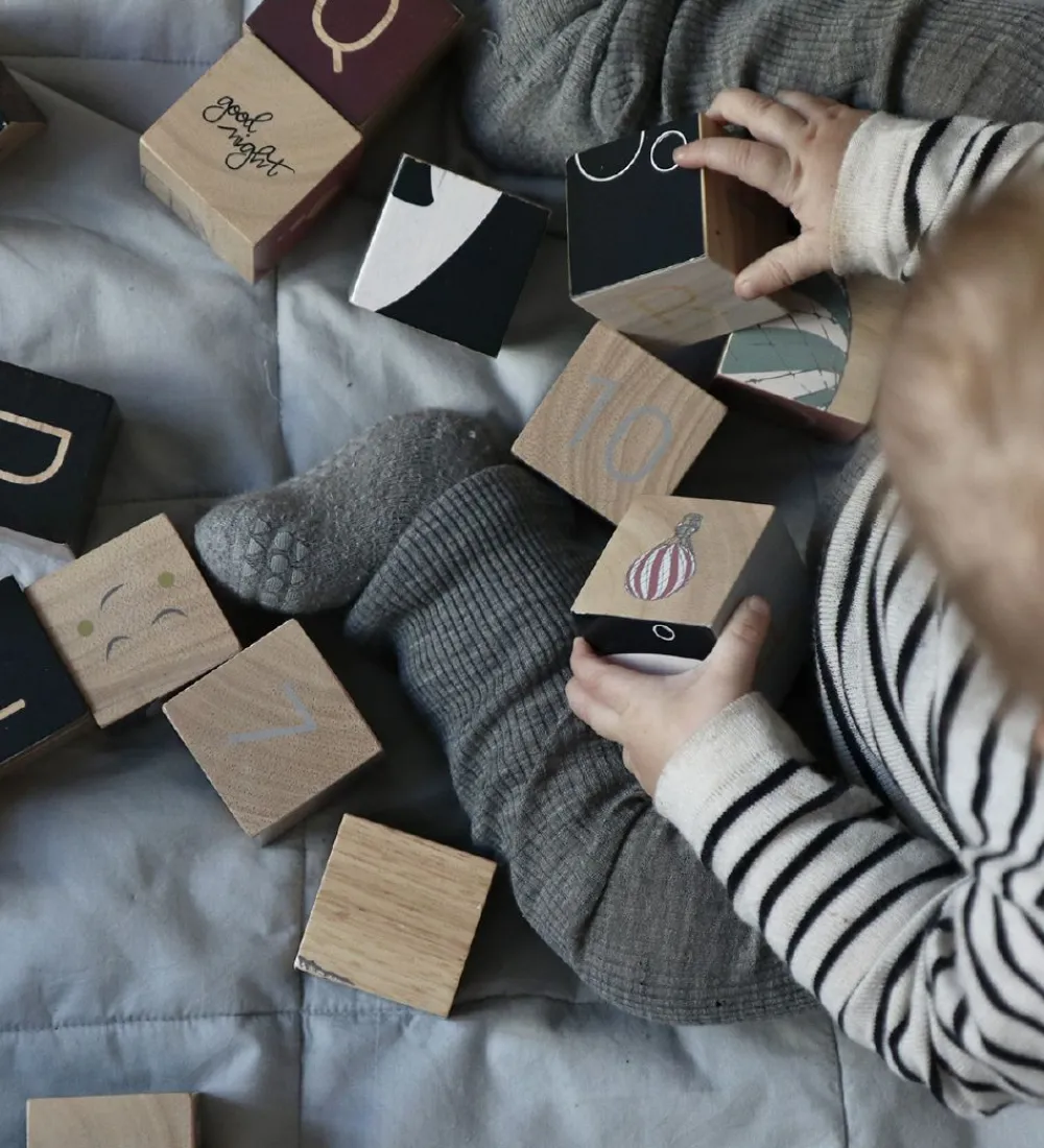 Klodserne kan bruges som inspiration til læring, leg og motorisk udvikling. Der medfølger en hvid pose, som man kan opbevare alle klodserne i.