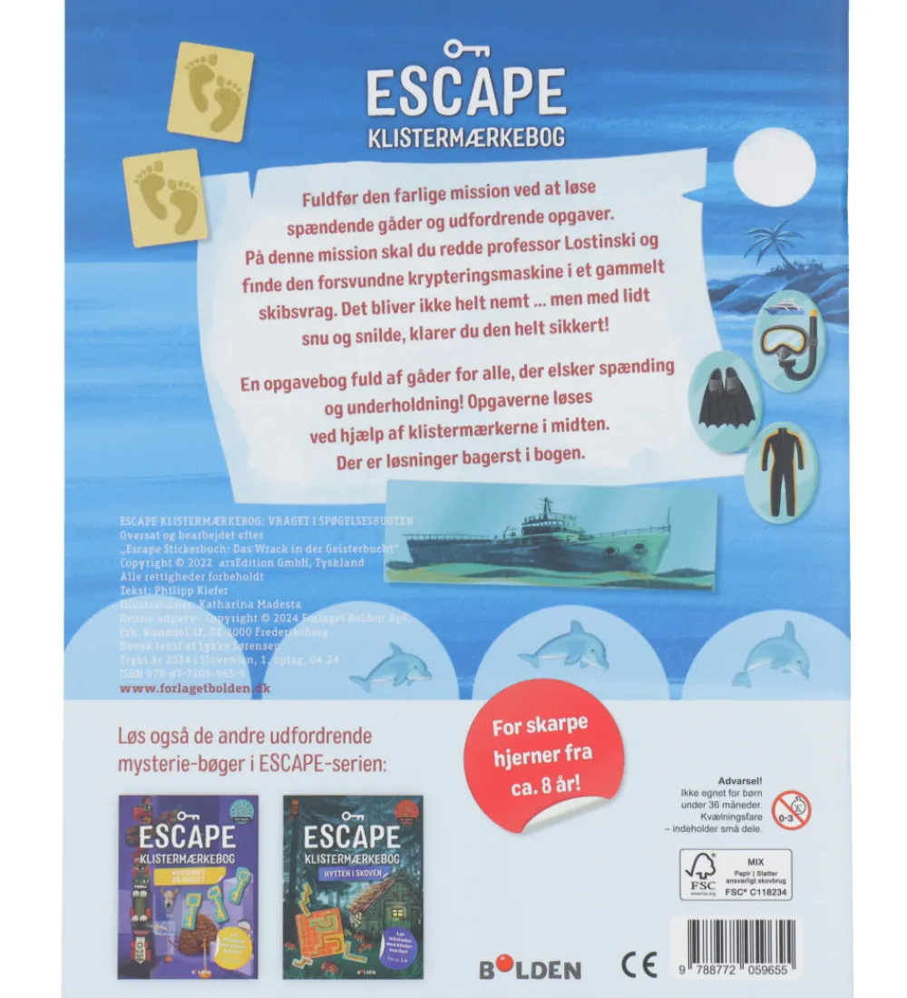 Sej Forlaget Bolden escape klistermærkebog med den spændende titel: Vraget i Spøgelsesbugten.