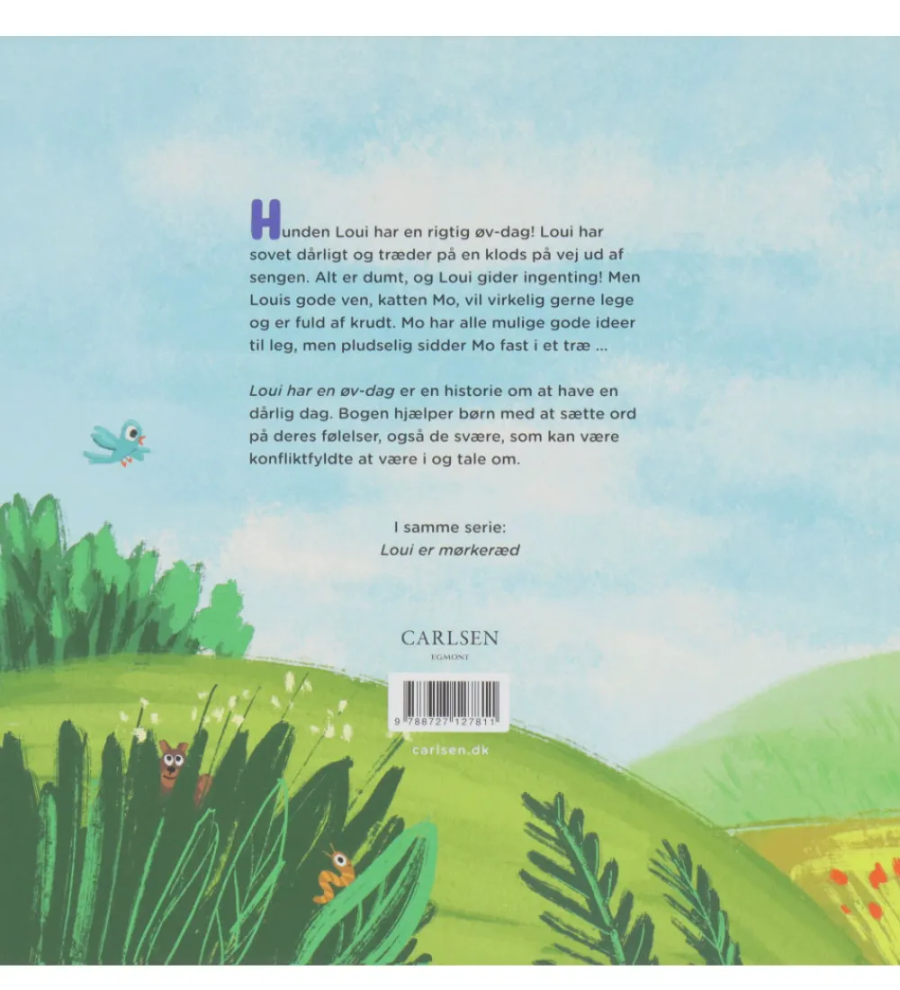 Forlaget Carlsen bogen handler om hunden Loui som har en dårlig dag, men hans katteven, har en masse idéer til leg. Bogen har farverige illustrationer og kan hjælpe børn med at sætte ord på deres følelser.