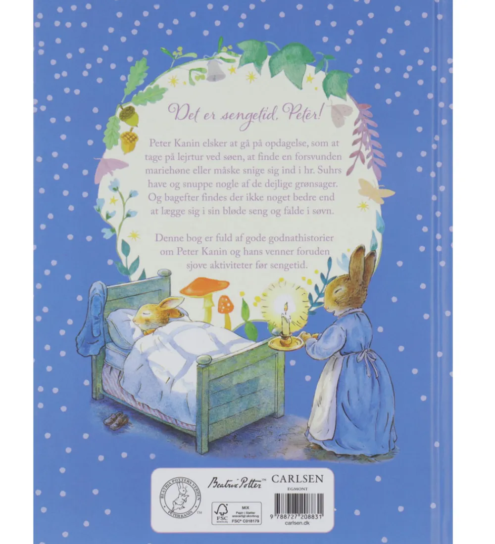 Forlaget Carlsen bogen byder på 20 gode godnathistorie fra Peter Kanins univers med flotte illustrationer for børn samt forskellige lege, øvelser og opskrifter. Bogen er indbundet.