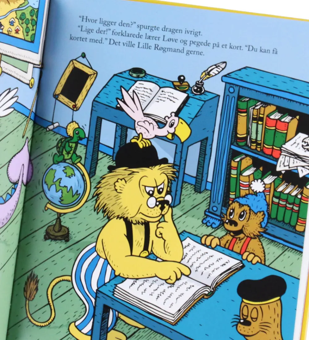 Forlaget Carlsens bog præsenterer en sjov historie med farverige illustrationer, hvor Rasmus Klump møder drageungen. Perfekt til små læsere, der elsker eventyr med kendte figurer.