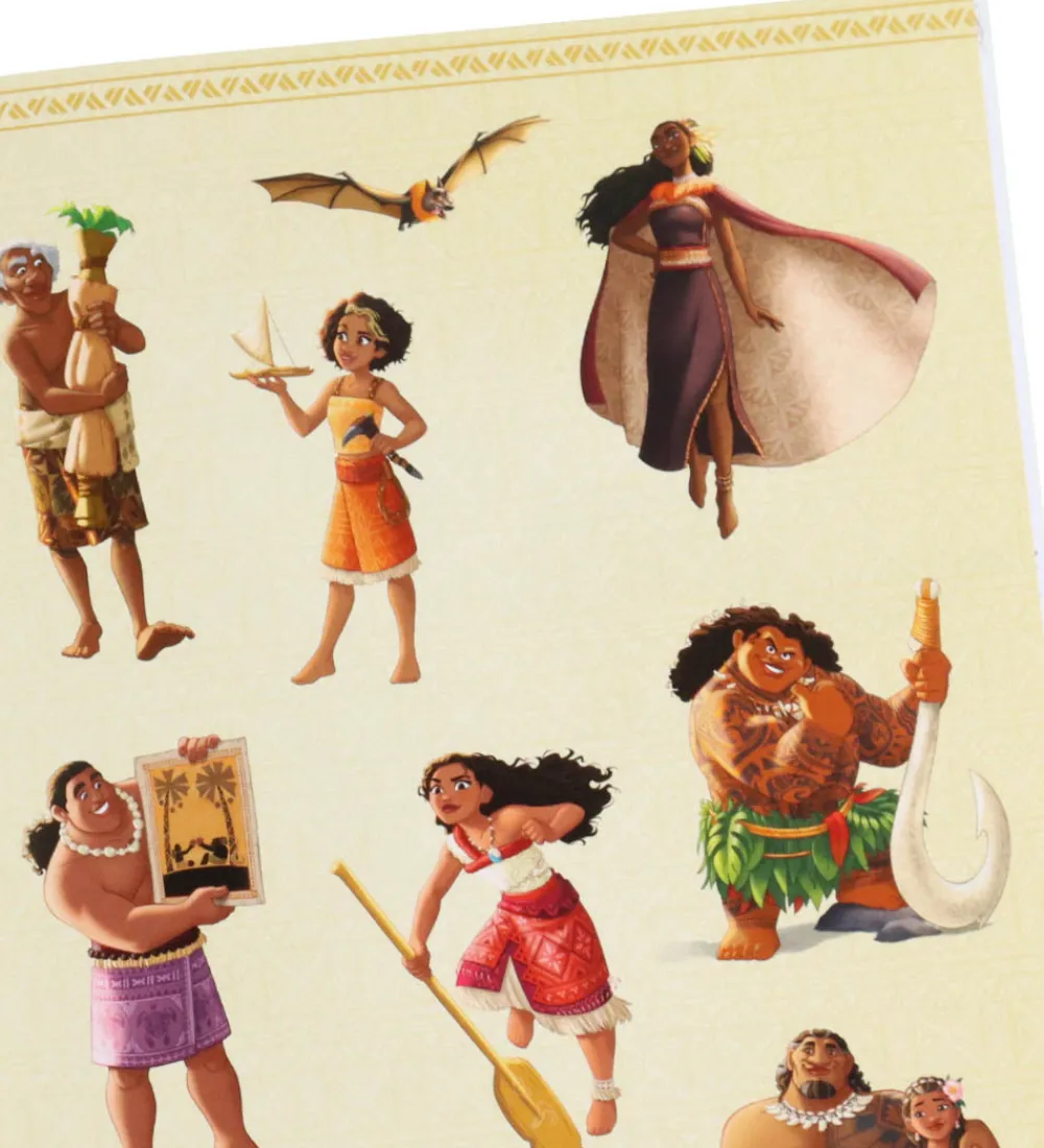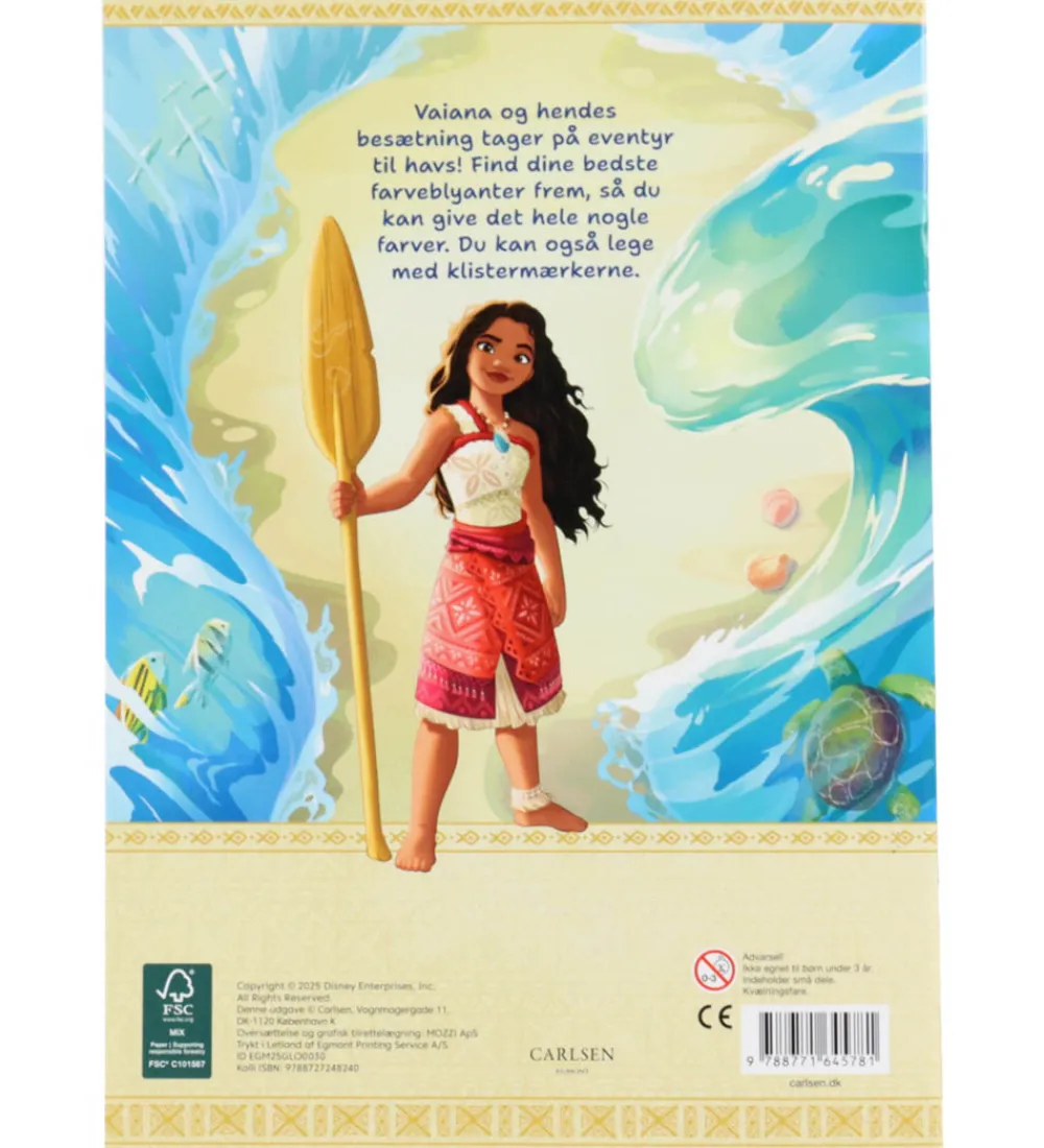 Malebogen indeholder fine illustrationer fra Vaiana-universet samt klistermærker til at pynte de mange flotte sider. Perfekt til fans af Disneys eventyrlige univers.