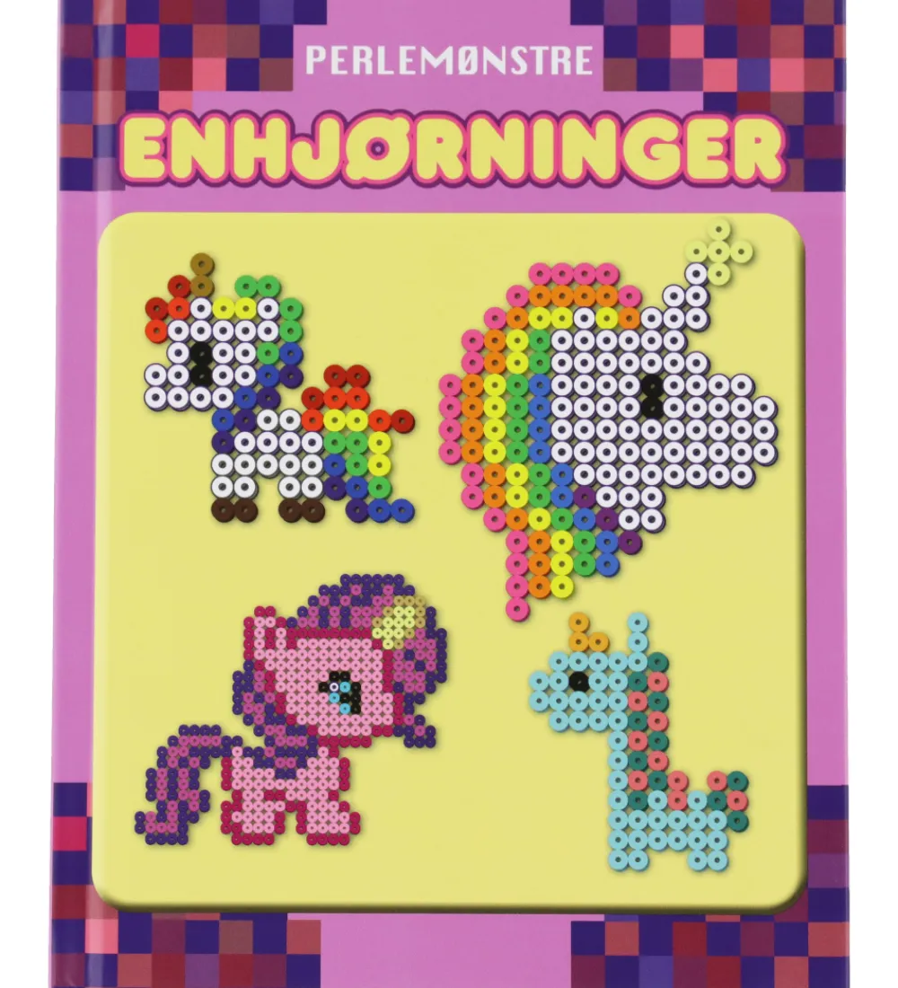 Farverig Forlaget Tukan bog med perlemønstre af enhjørninger.