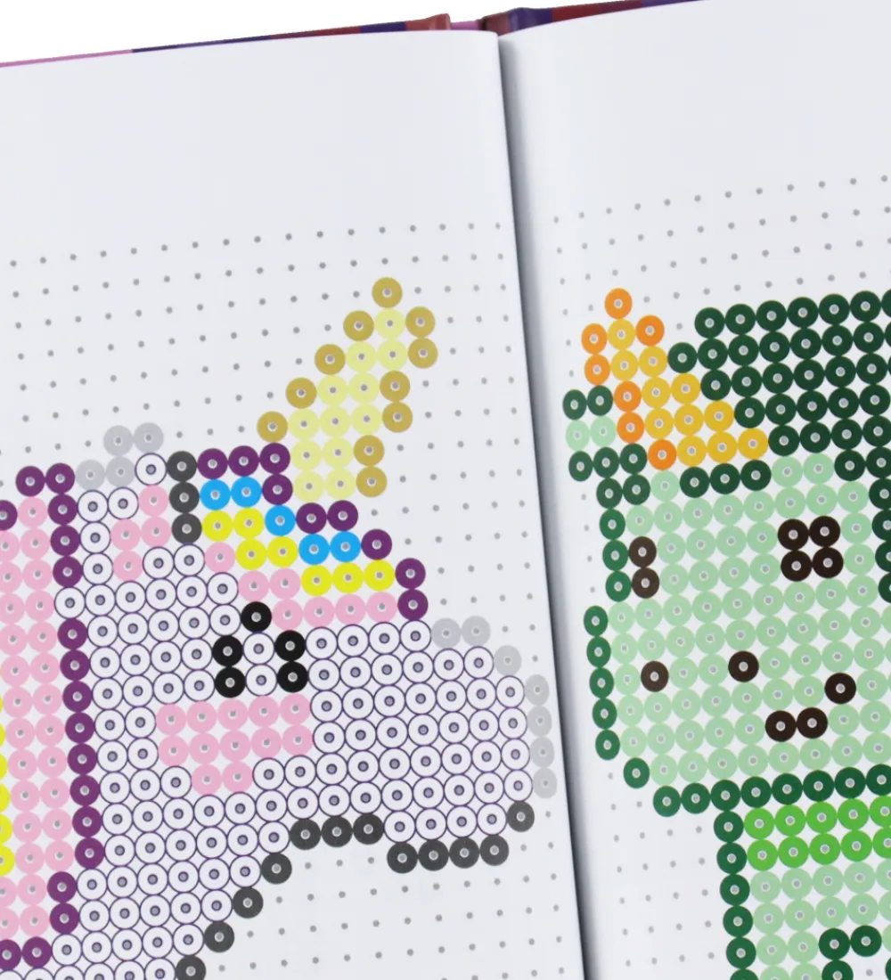 Forlaget Tukan bogen rummer 36 sider med forskellige perlemønstre, så du kan lave masser af flotte perle-kunstværker.