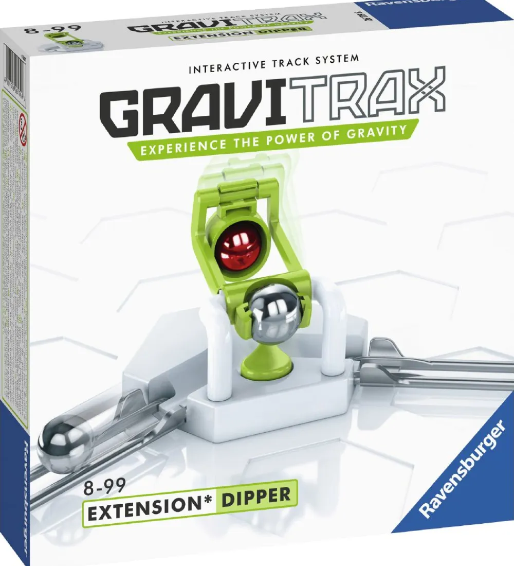 GraviTrax stendykkeren kobles på GraviTrax startersættet, som en ekstra del af kuglebanen. Forbind forskellige skinnedele for ekstra variation og overvældende resultater.