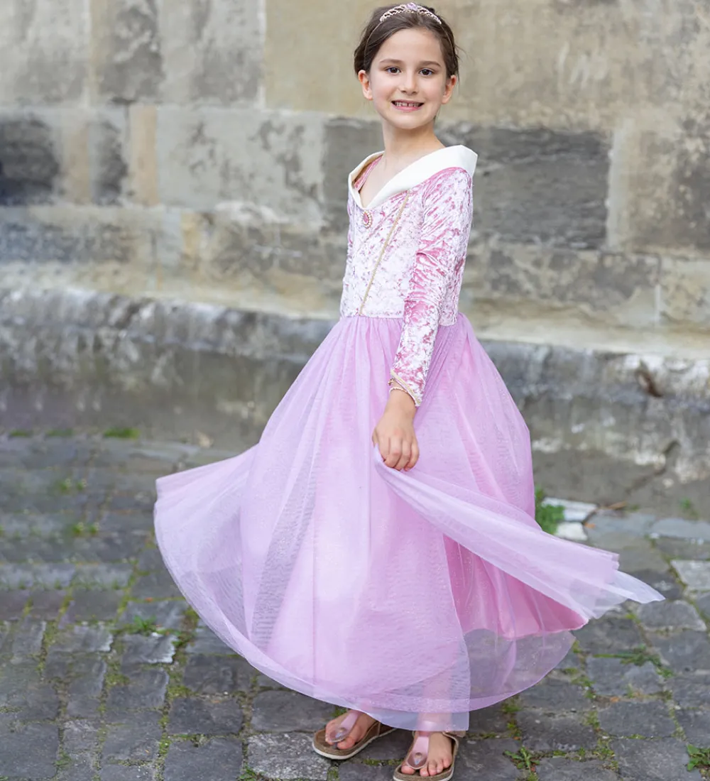 Skøn Great Pretenders udklædning med lange ærmer i en lys rosa nuance. Kjolen har et elegant design med fine detaljer, der gør den til et helt særligt valg til leg og fantasi.