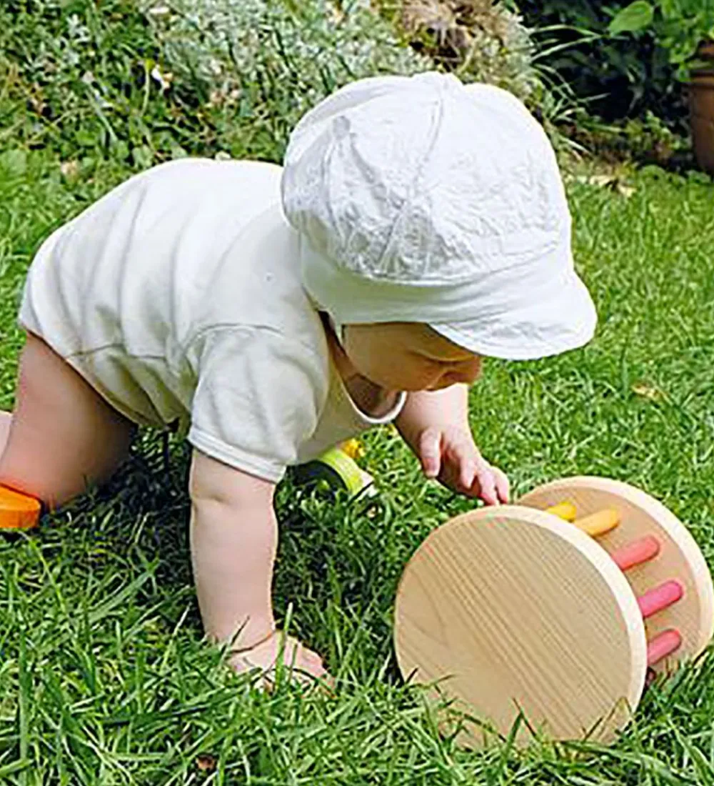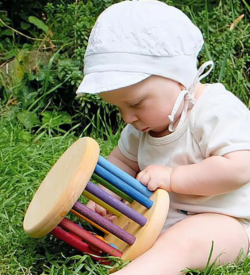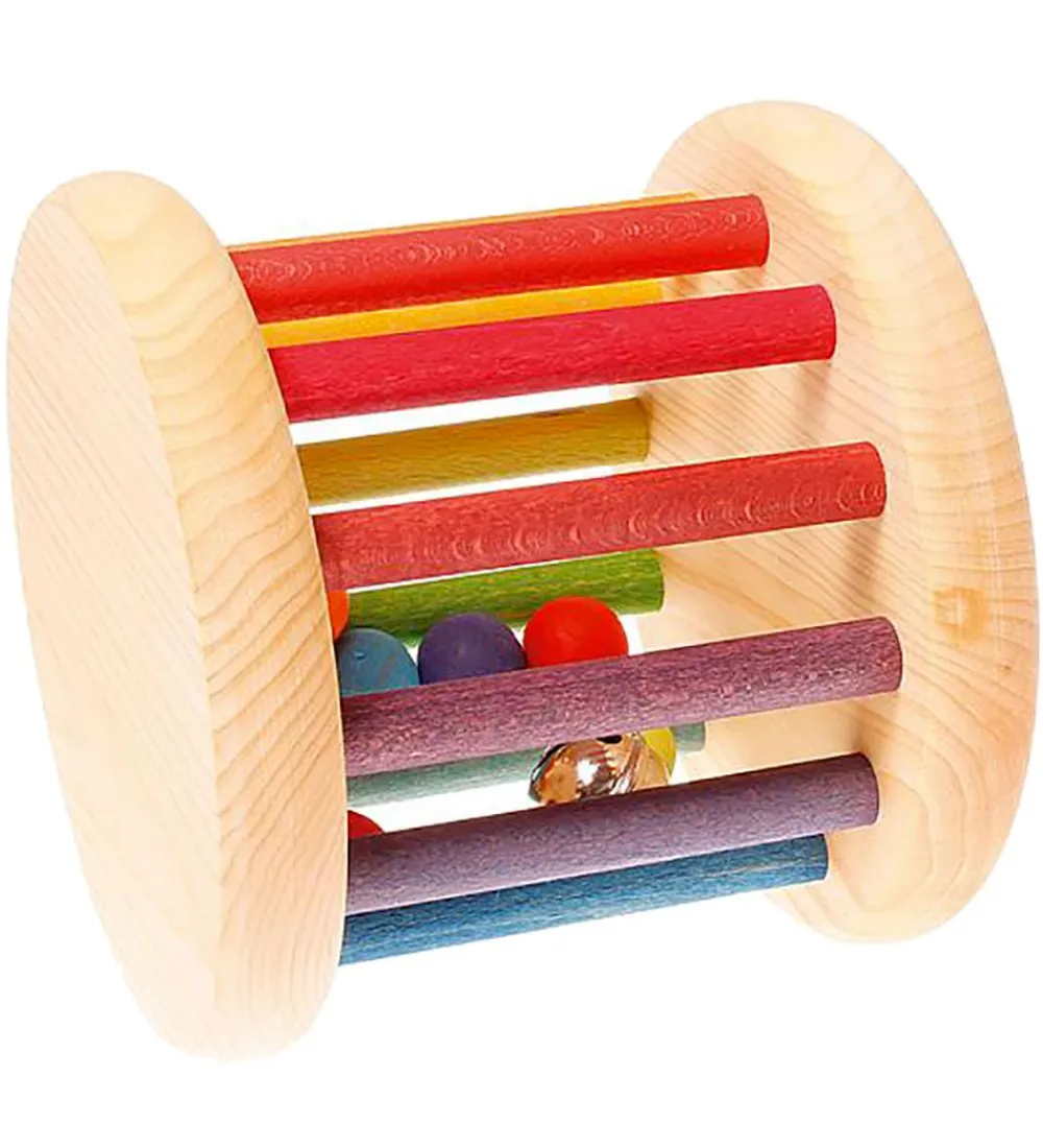 Grimms trælegetøjet er sjovt og lærerigt for de små, som stadig er ved at øve motorikken og sanserne. Når man leger med ranglen laver den beroligende lyde og den er let at holde fast i, selv for de små hænder.