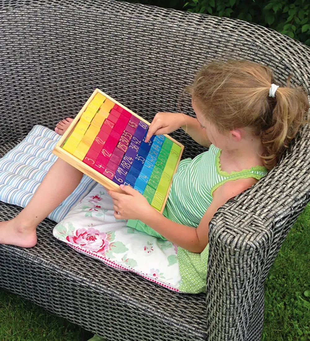 Grimms trælegetøjet er perfekt til de små, som stadig er ved at øve matematikken. 110 af brikkerne har tabellerne 1-11 og de resterende 90 har primtallene, 200/300/400/500, tilfældige tal mellem 26-98 og matematiske tegn. Tællebrættet kan bruges fra en ung alder og mange år frem, da man altid kan øve sig og spille forskellige sjove, lærerige spil.