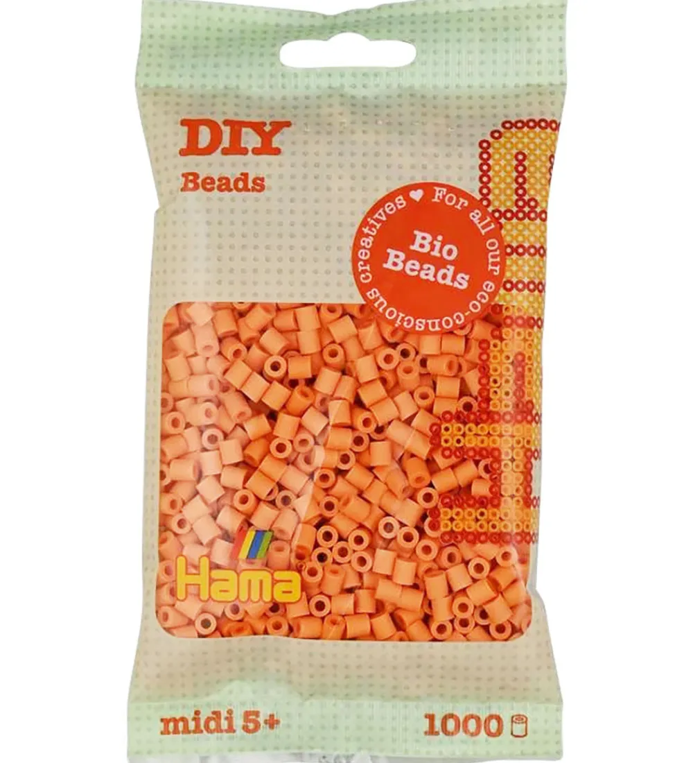 Flotte Hama perler i ensfarvet lys aprikos.