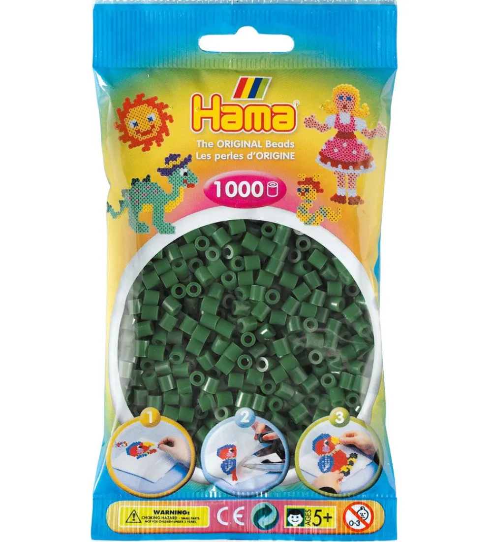 Sjove Hama perler i ensfarvet skovgrøn.