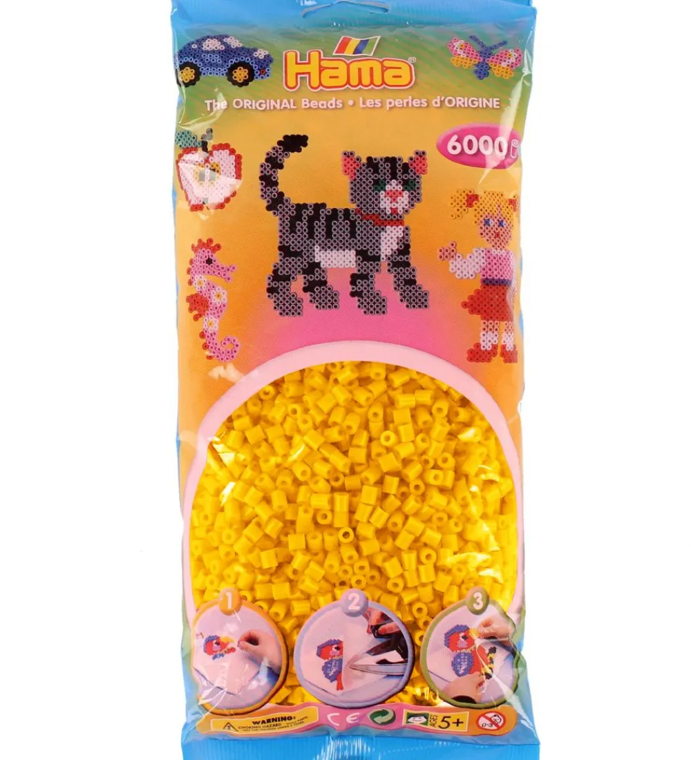 Sjove Hama perler i ensfarvet gul.