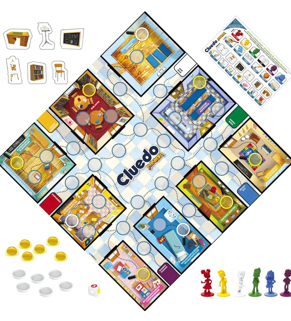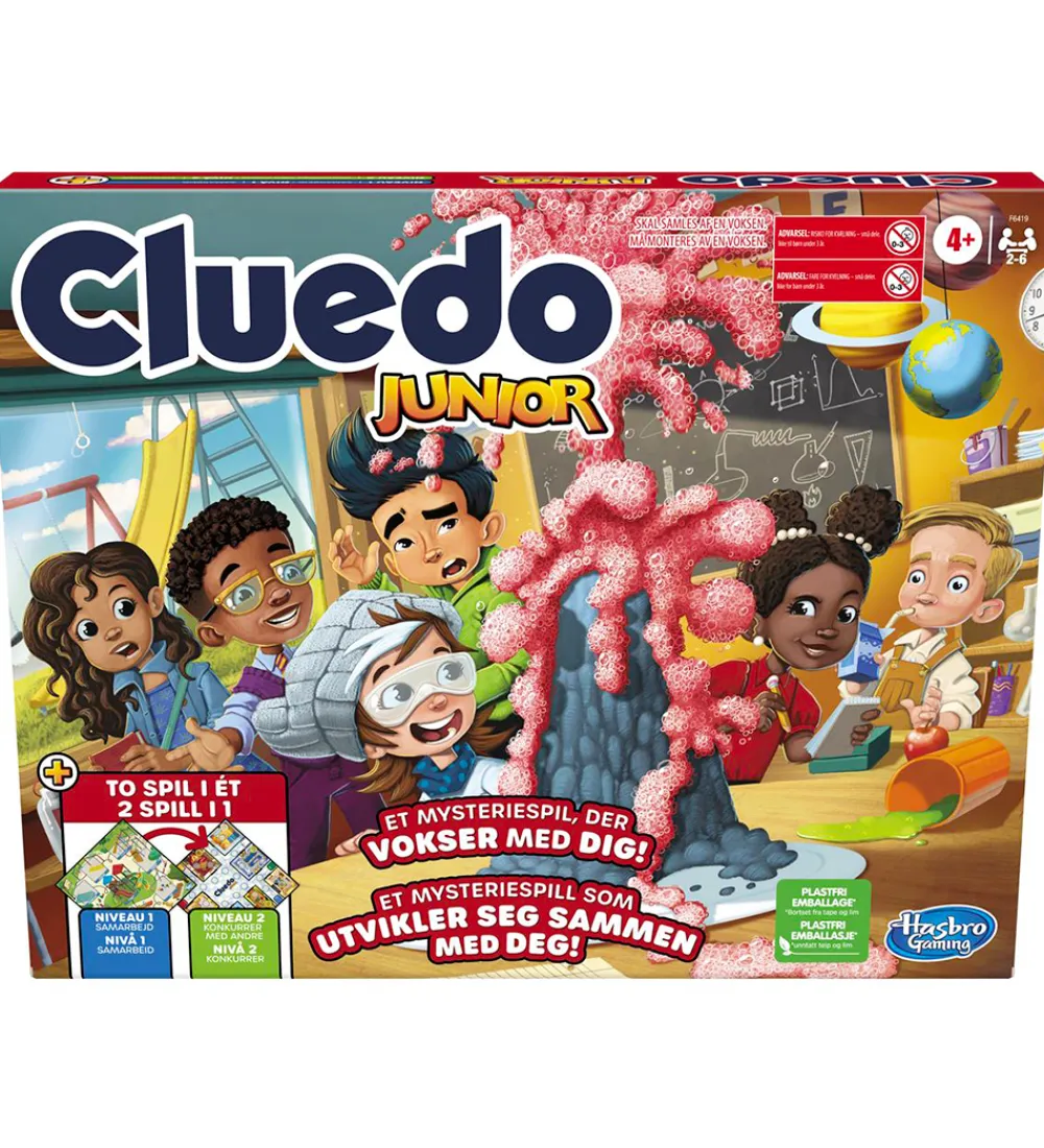 Cluedo Junior er i et børnevenligt og hyggeligt design og er stadig spillet, hvor du kan løse et spændende mysterium.