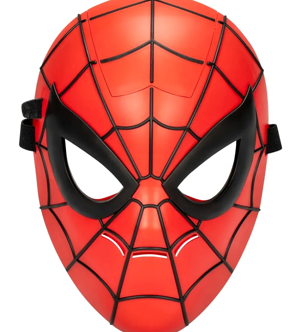 Hasbro udklædningen er perfekt til Spider-Man-kostumet. Der er glas ved øjnene som kan lyse når masken åbnes, og ellers dækker den hele ansigtet. Bagpå er der en sort, justerbar elastiksnor, så den kan sidde godt fast omkring hovedet.