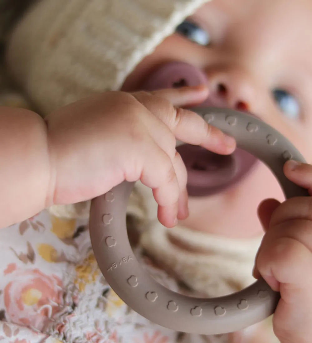Bideringene har en rund form og er forsynet med små forhøjninger, der giver en taktil oplevelse. Hevea bideringene er designet med omtanke og er lette for små hænder at holde om.