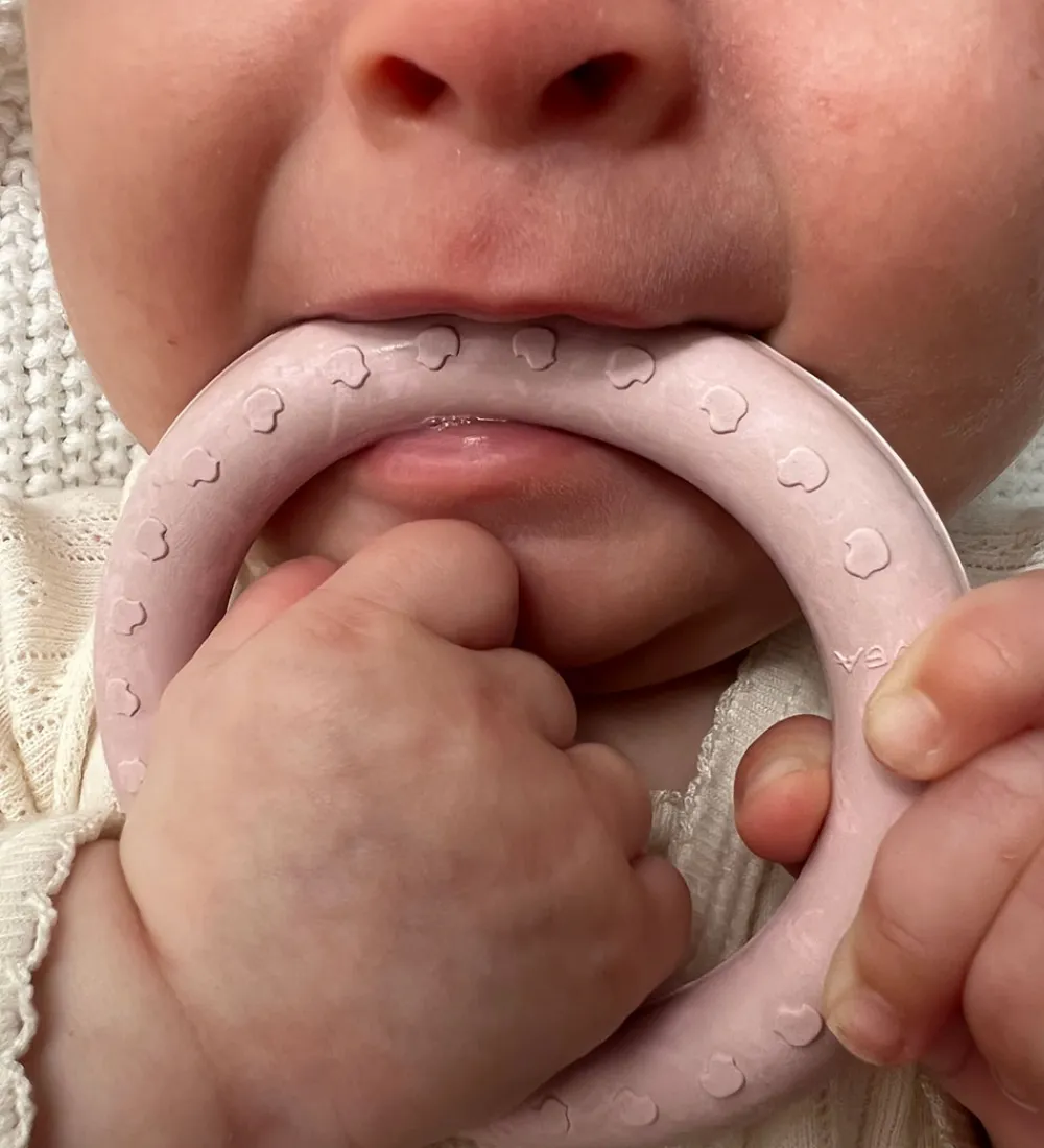 Naturgummiet er helt frit for farlige kemikalier som PVC, ftalater, BPA og plastik, og er derfor helt sikkert at tygge i for barnet.