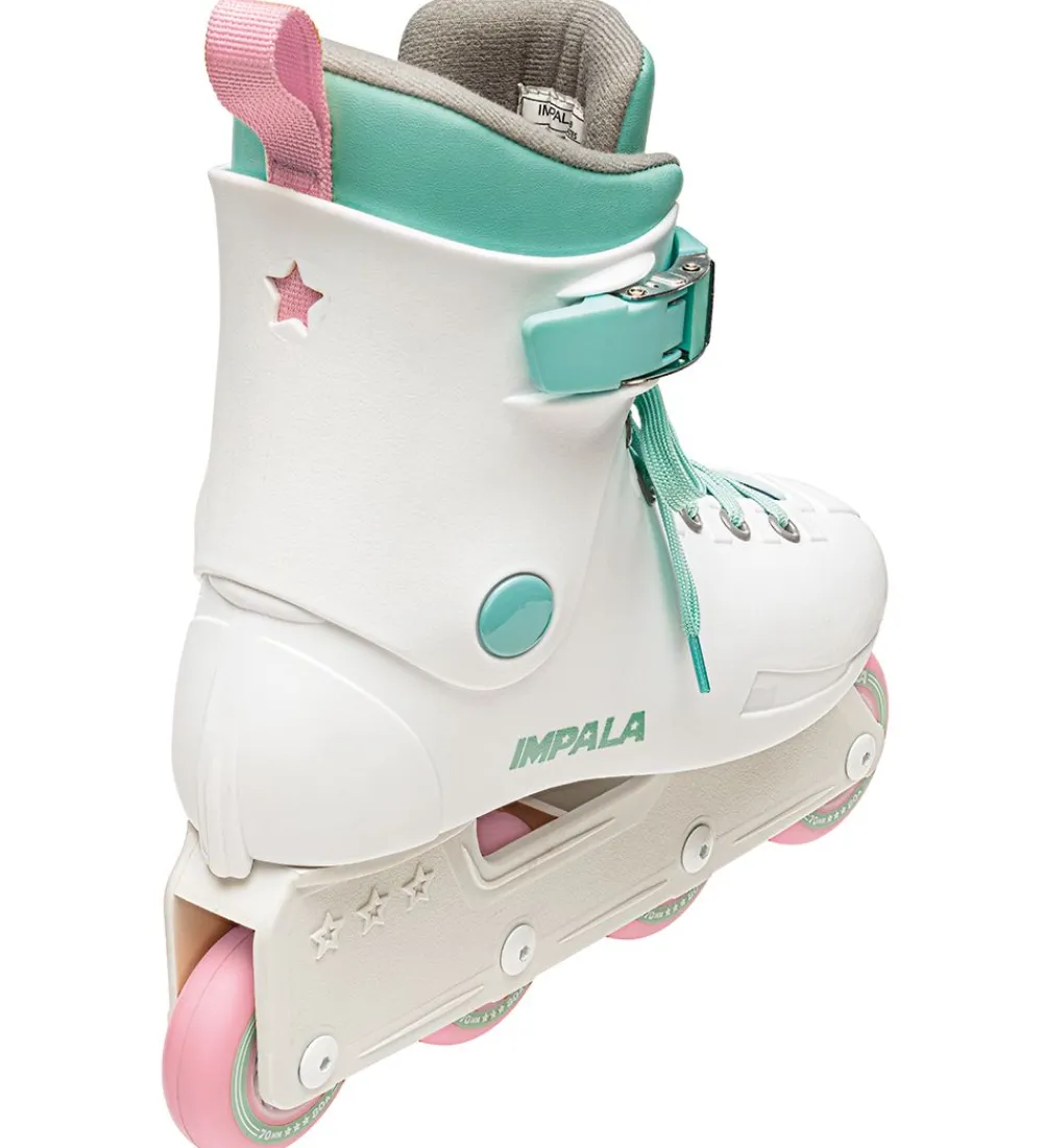 Impala rulleskøjterne er en inliners-model. Ydersiden er af en fast skal, og åbningen er også fast med en blød foring. Rulleskøjterne er derfor både stabile og behagelige på samme tid. Impala rulleskøjterne lukkes med snørebånd og en plastspænde, så de er nemme at justere efter barnets fod.