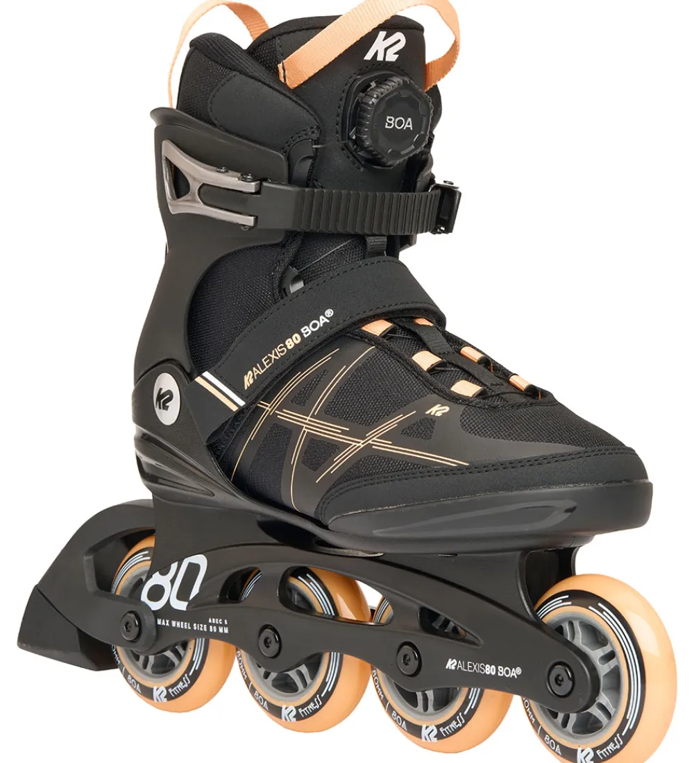 Flotte K2 rulleskøjter i sort med orange detaljer.