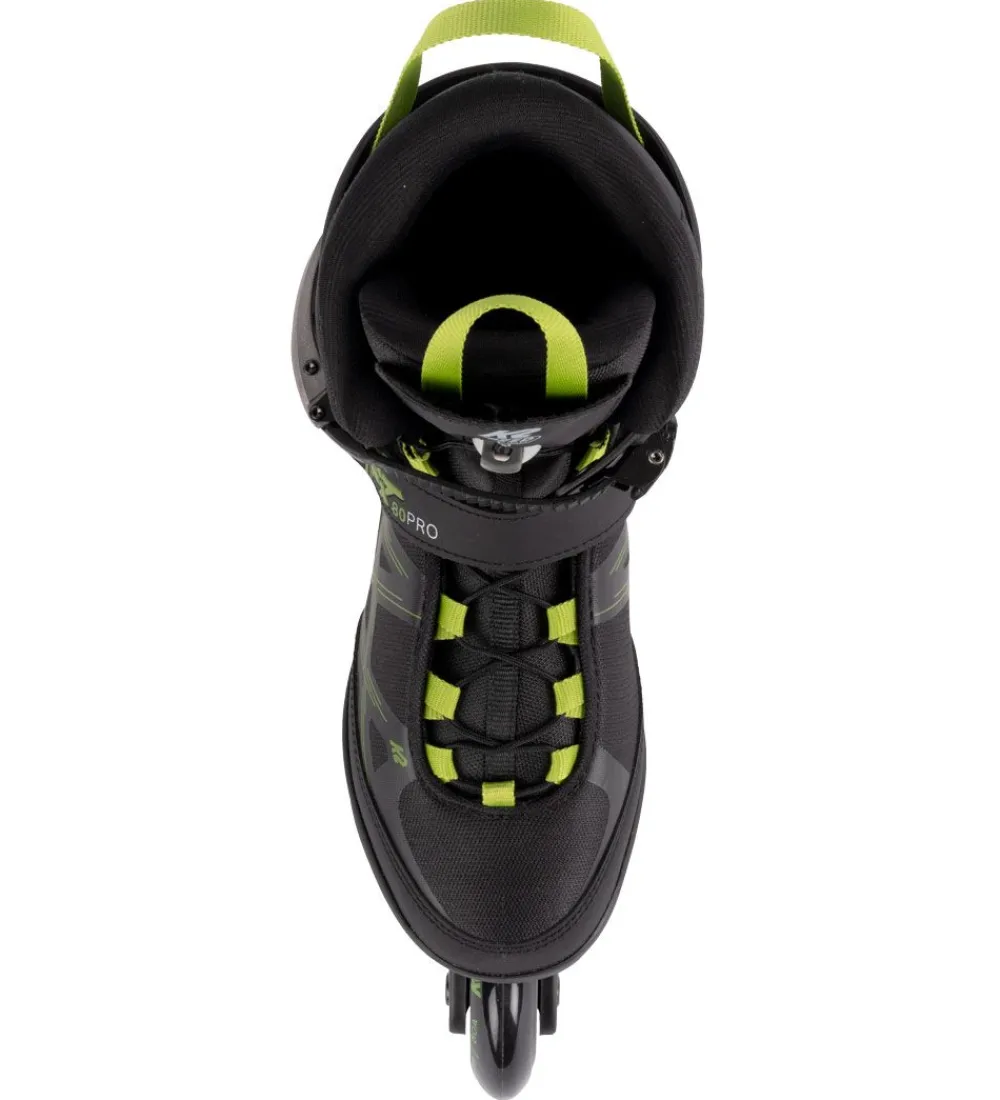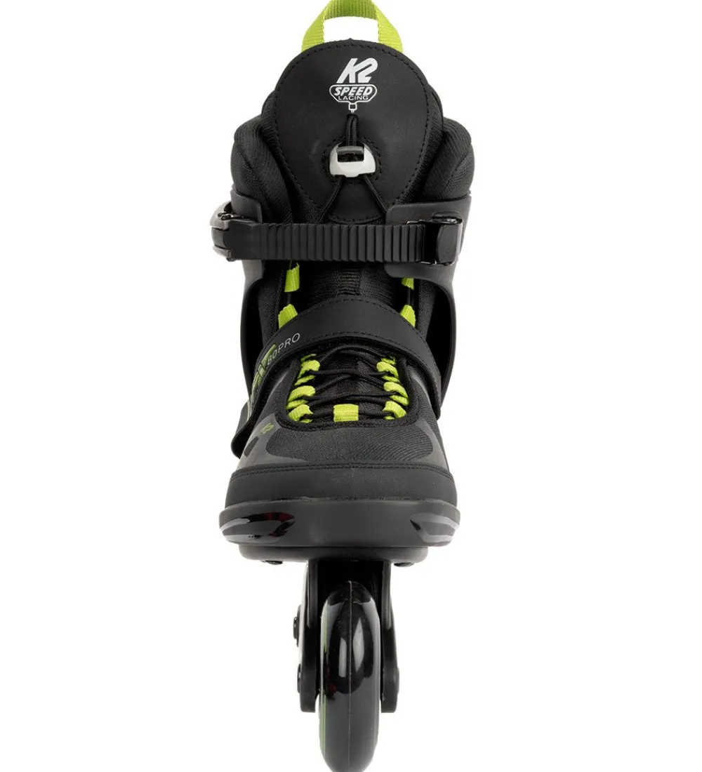 Fede K2 rulleskøjter i sort med grønne detaljer.