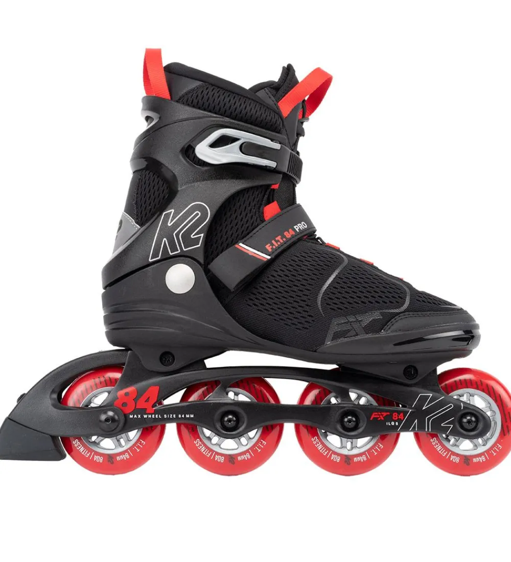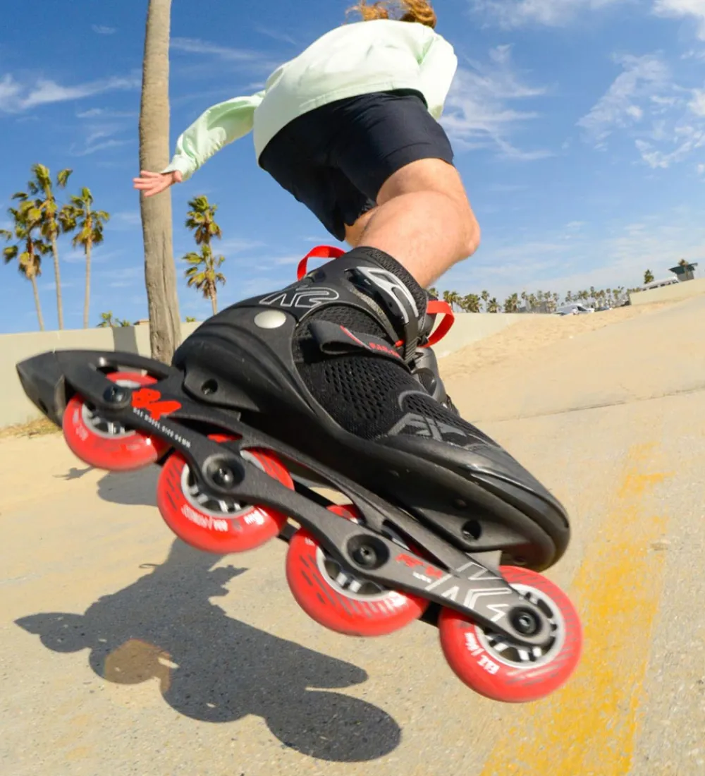 Fede K2 rulleskøjter i sort mesh med røde detaljer.