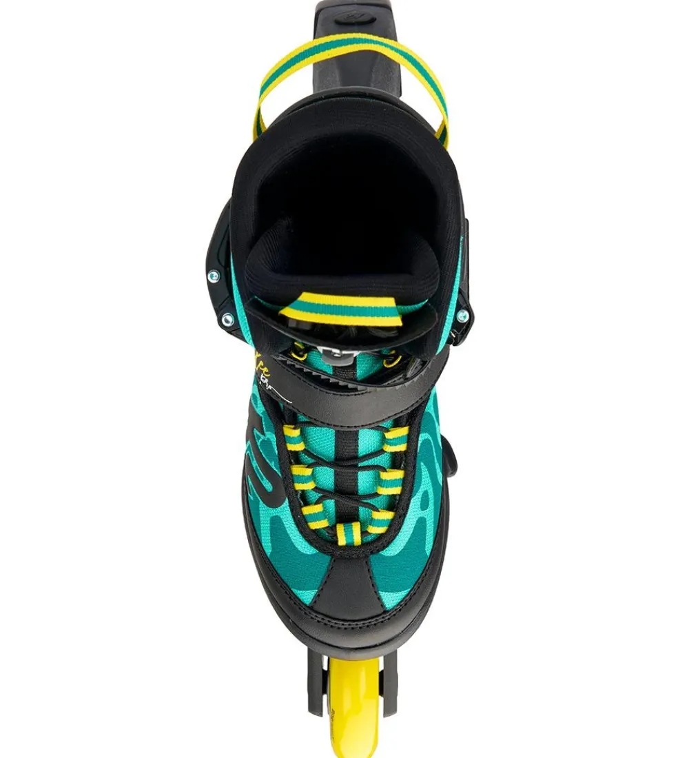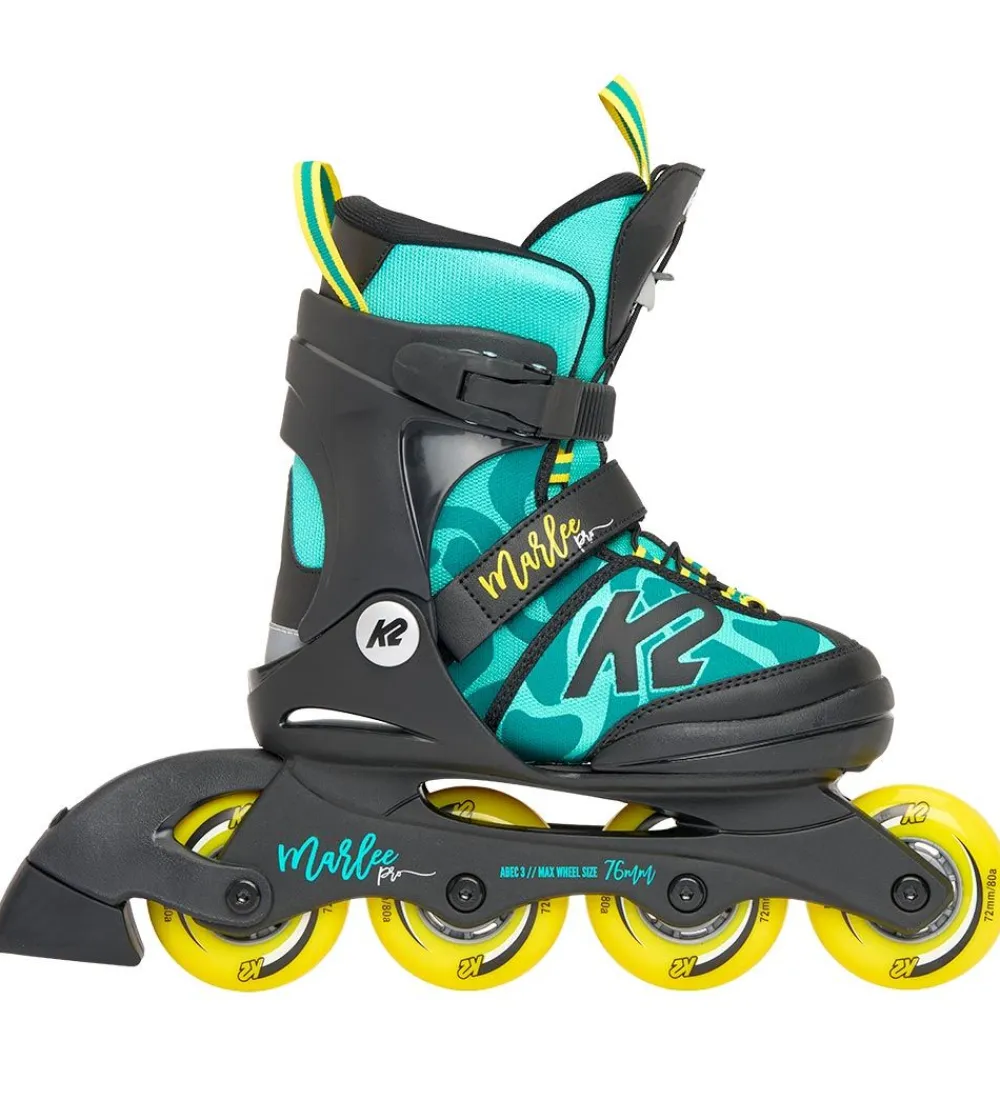 Flotte K2 rulleskøjter i turkis, sort og gul.