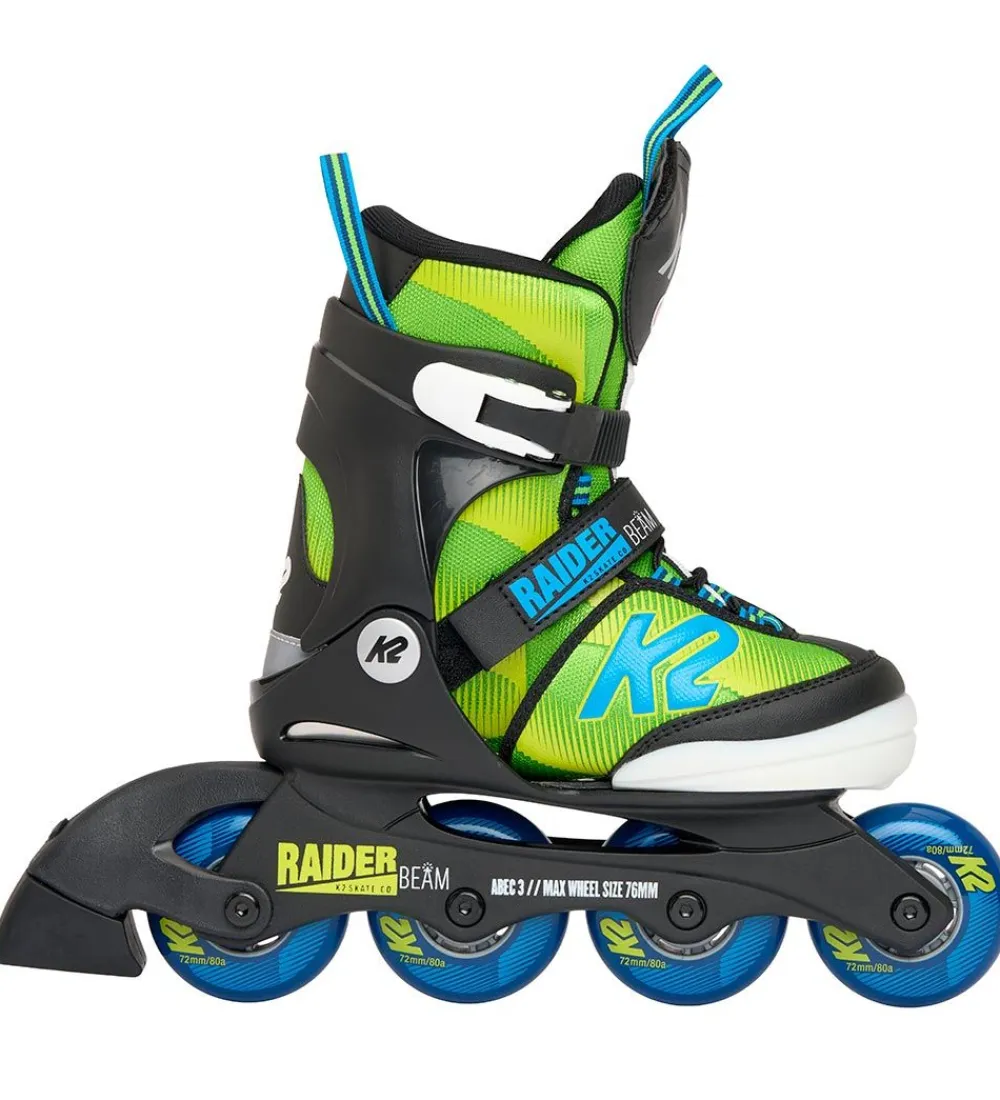 K2 rulleskøjterne har 72 mm hjul i hård gummi og ABEC 3 kuglelejer. Rulleskøjterne er ovenikøbet fri for PVC.
