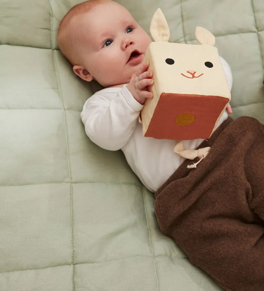 Fine Kids Concept bamser med en firkantet form, med motiver af dyreansigter på fronten og søde ører. På de andre sider er der forskellige detaljer, som f.eks. ben.