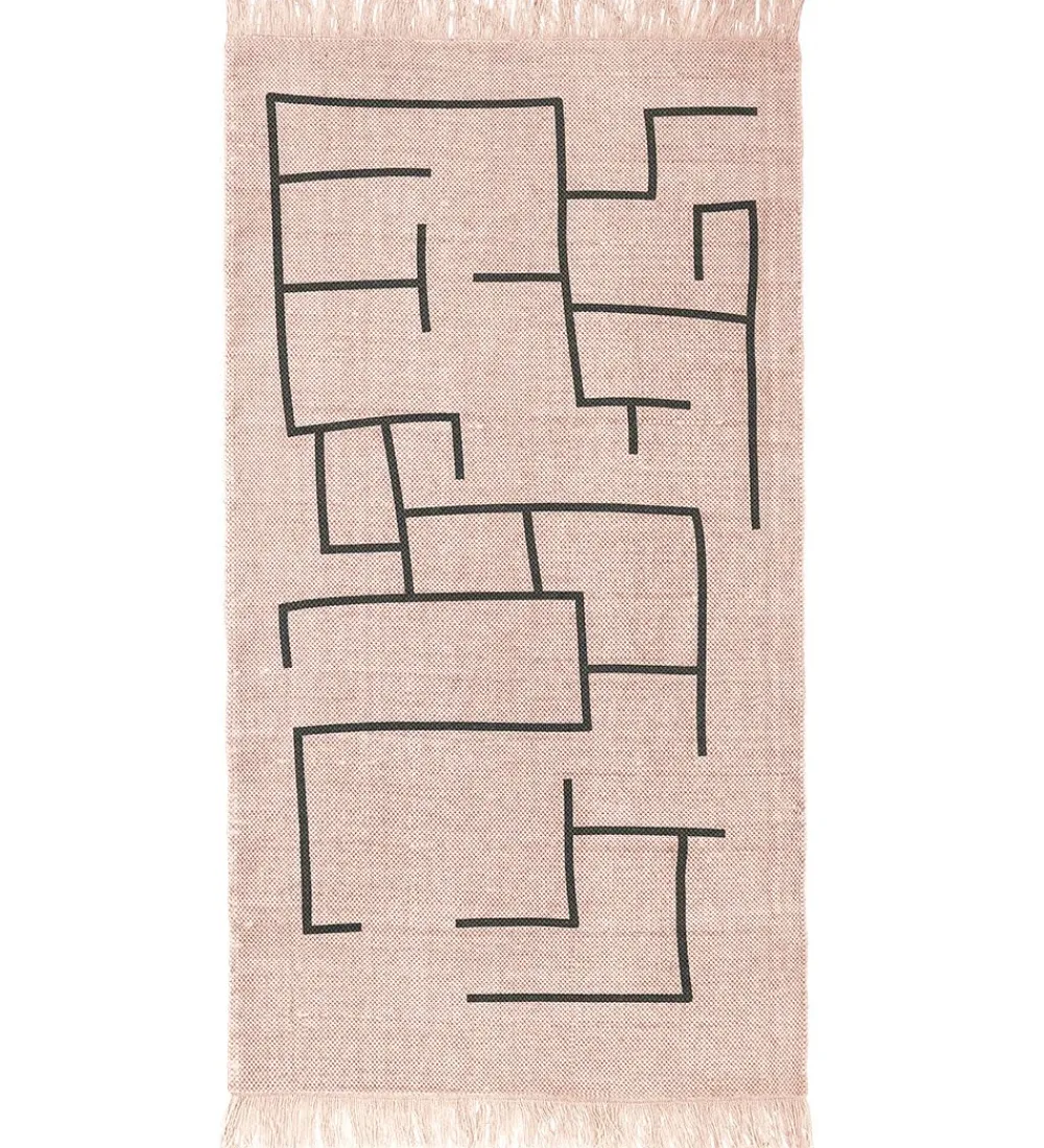 Pænt Kids Concept tæppe i støvet rosa med et fint sort mønster, og der er fine frynser i hver ende.
