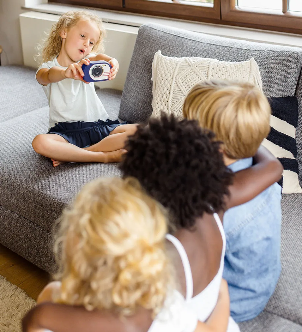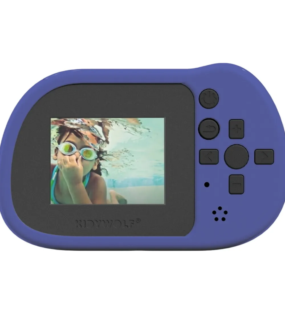 Kidywolf kameraet er forstærket med silikone, som sikrer at man har et godt greb og at det er vandtæt ned til en meter. Kameraet har en god skærm på den ene side og har også blitz. Kameraet er ideelt at have med på turen til f.eks. skoven, stranden eller lignende. Kameraet kan både tage billeder og video.
