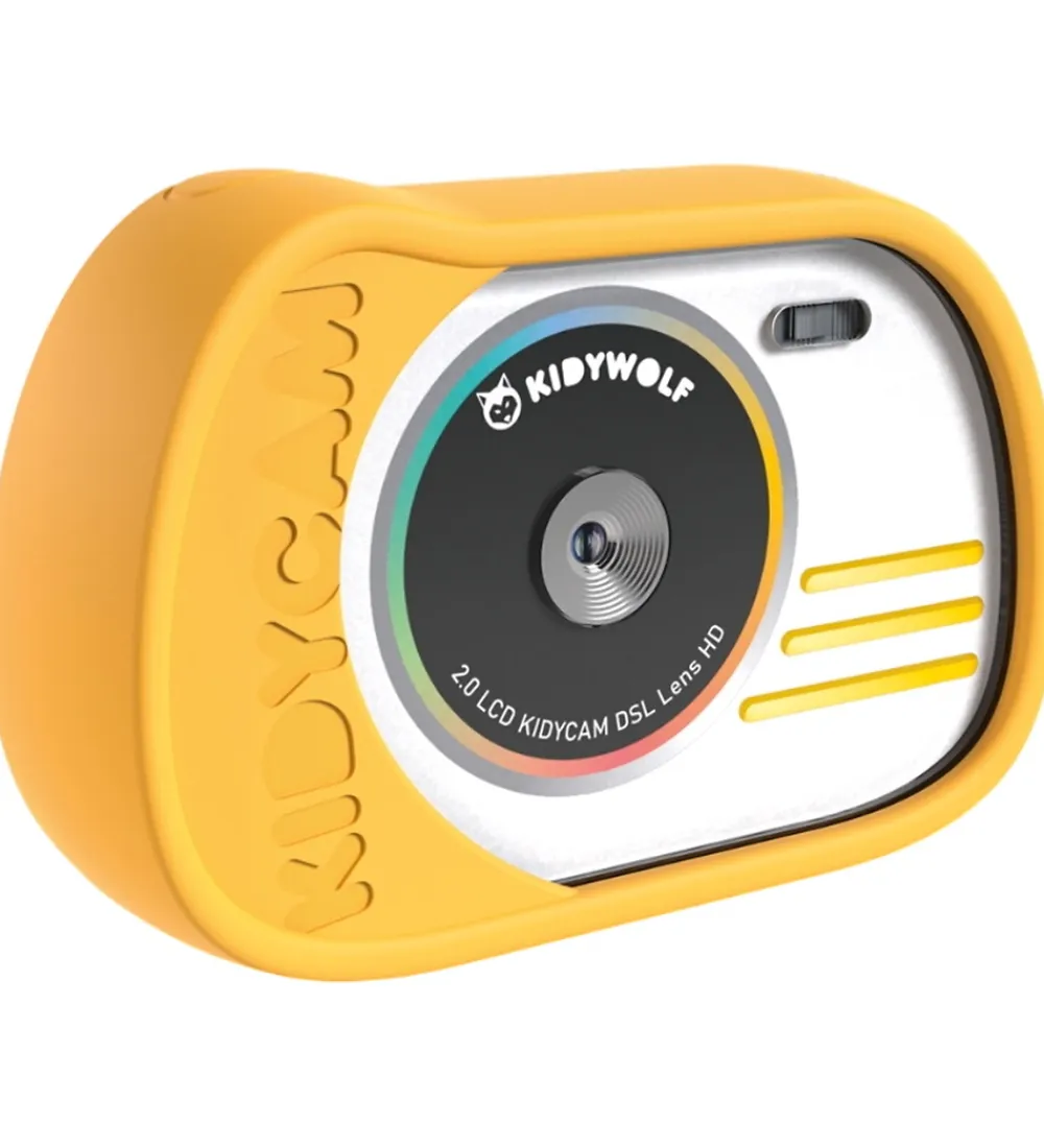 Kidywolf kameraet er forstærket med silikone, som sikrer at man har et godt greb og at det er vandtæt ned til en meter. Kameraet har en god skærm på den ene side og har også blitz. Kameraet er ideelt at have med på turen til f.eks. skoven, stranden eller lignende. Kameraet kan både tage billeder og video.