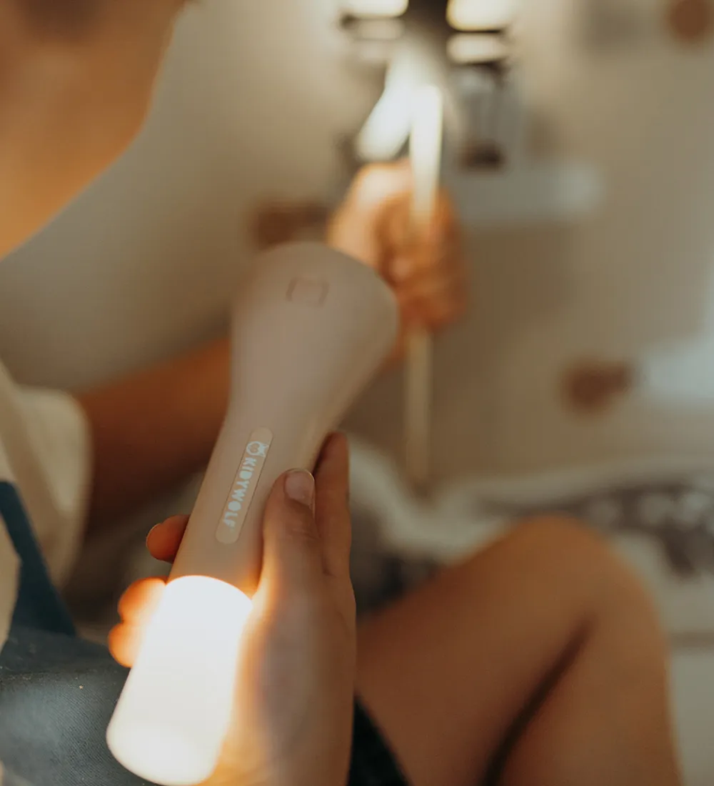 Kidywolf lommelygten kommer med 3 forskellige funktioner, samt 3 forskellige lysstyrker på 100, 60- og 20%. Den kan både bruges som en almindelig lommelygte, en stående lampe, og så har den en hank så man kan hænge lommelygten op og bruge den som lampe. Lommelygten har et funktionelt design, der gør det nemt at bruge til leg og eventyr.