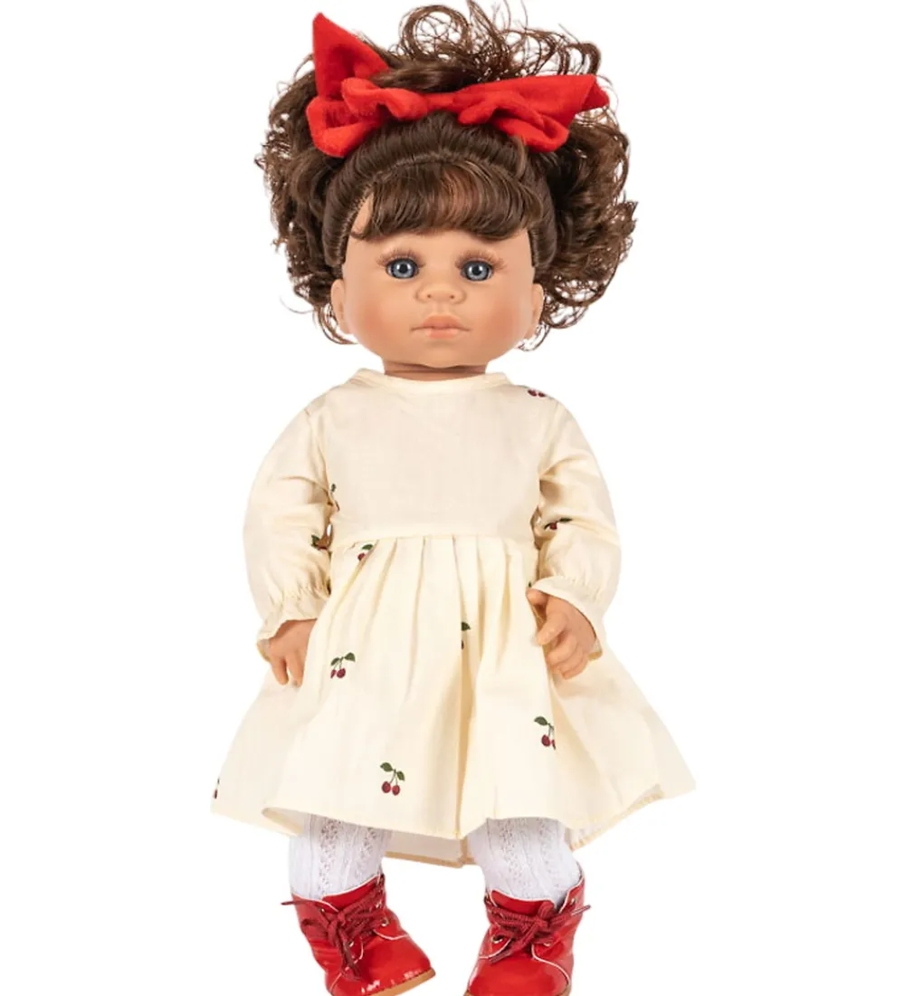 Fin Konges Sløjd dukke i form af pigen Odette. Dukken er klædt i en hvid kjole og røde sko, og hun har brunt hår.