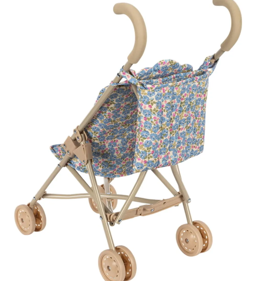 Skøn Konges Sløjd dukkeklapvogn med et flot, multifarvet blomsterprint.
