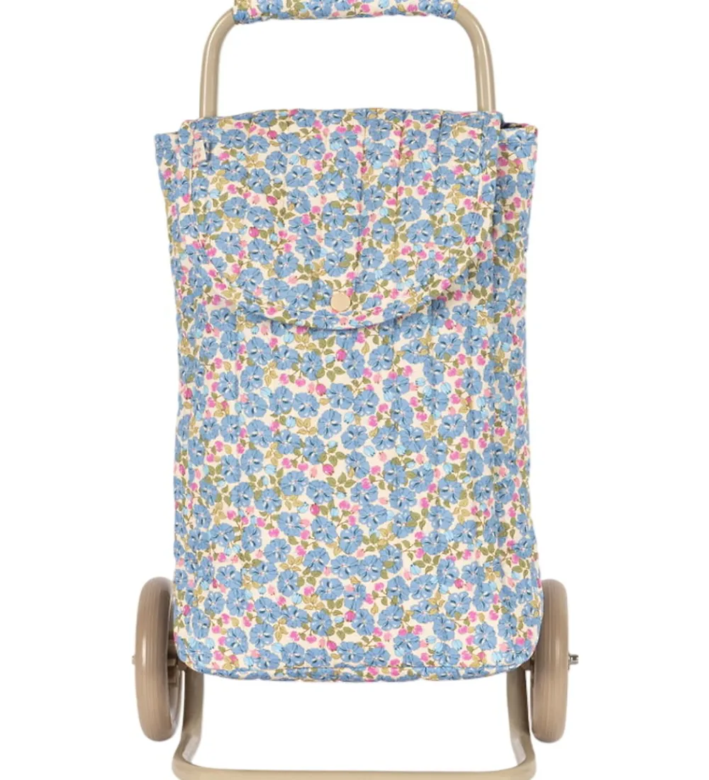 Smart Konges Sløjd trolley i lysebeige og med et charmerende blomsterprint i blå og rosa nuancer. Konges Sløjd trolleyen har to hjul, et praktisk håndtag og et stort rum der åbnes med en trykknap.