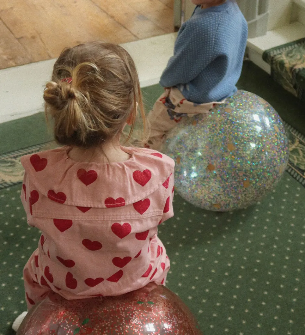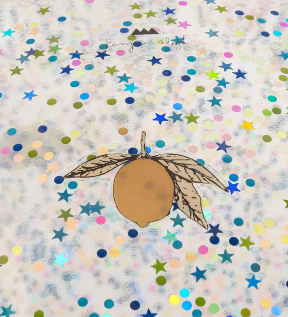 Fantastisk Konges Sløjd hoppebold med farverige, metalliske prikker og små citronprint.