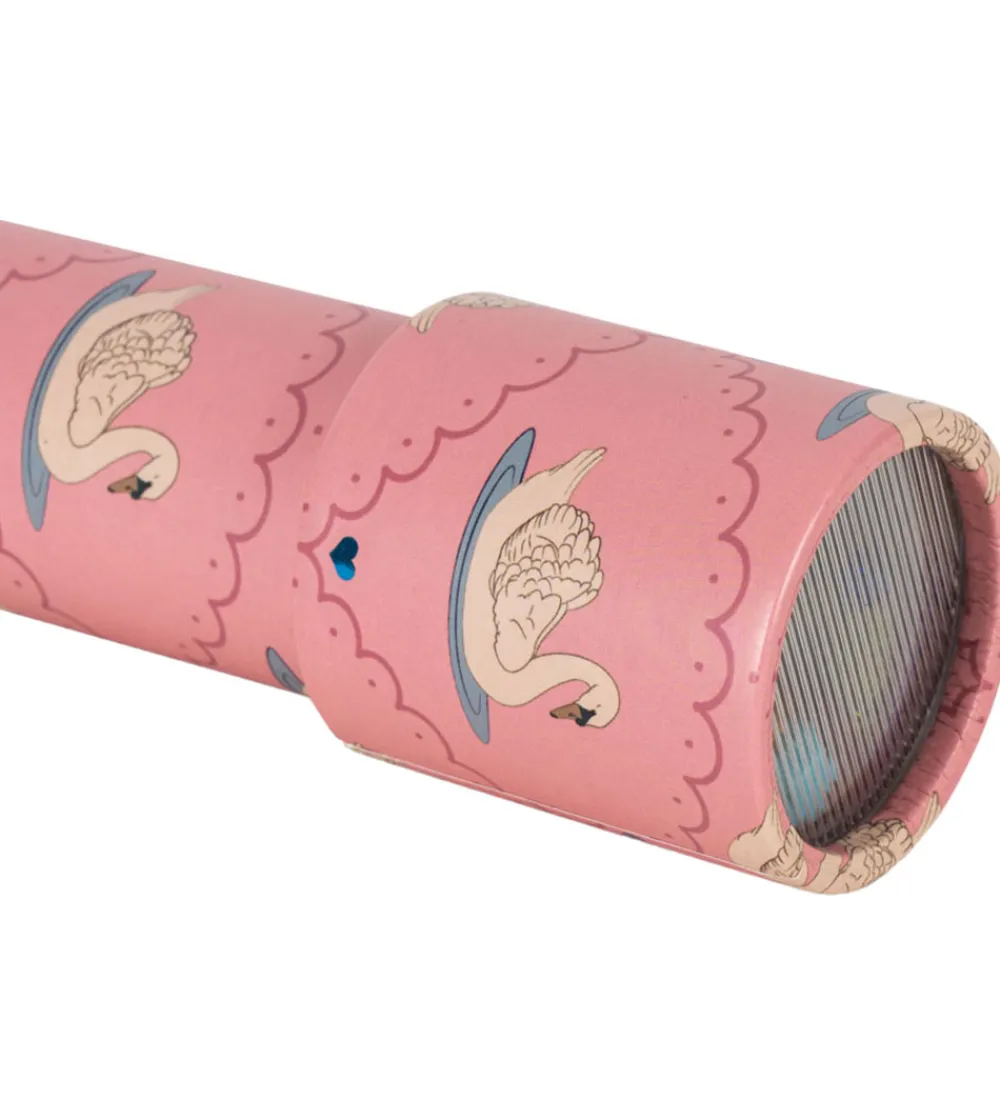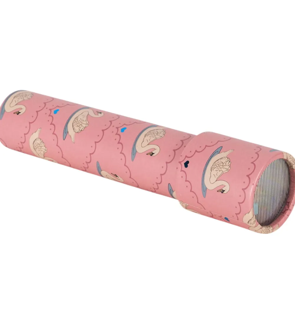 Sjovt Konges Sløjd kaleidoskop i rosa med et flot svaneprint.