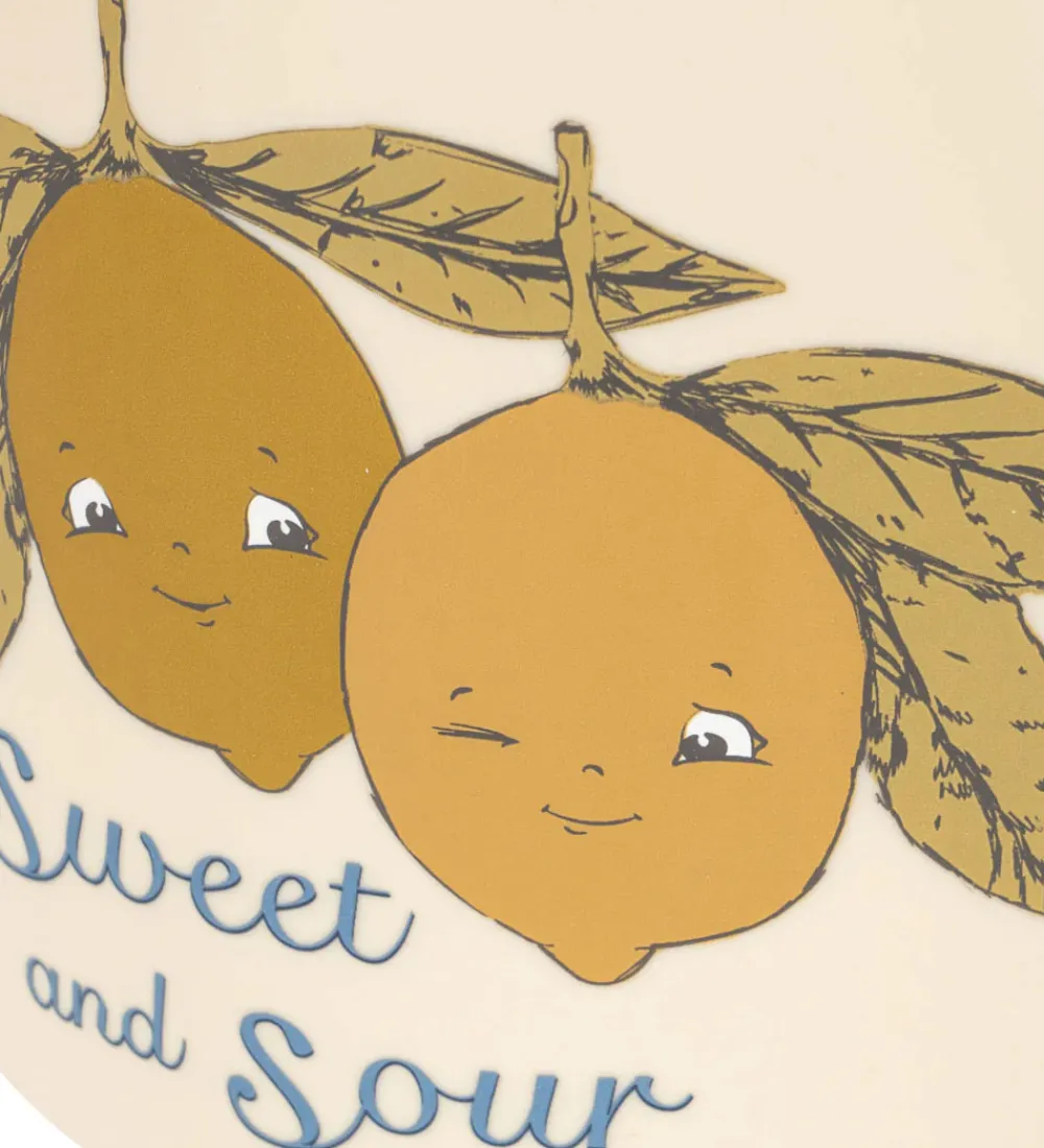 Smart Konges Sløjd sandlegetøj i beige med søde illustrationer af citroner med glade ansigter og teksten “Sweet And Sour”. Sandlegetøjet inkluderer en vandkande, en spand, en skovl og en form i silikone. Sandlegetøjet indbyder til leg og kreativitet i sandkassen eller på stranden.