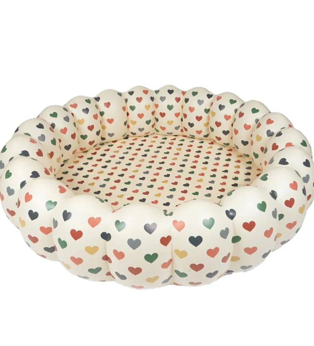 Herligt Konges Sløjd badebassin i råhvid med et charmerende print af farverige hjerter.