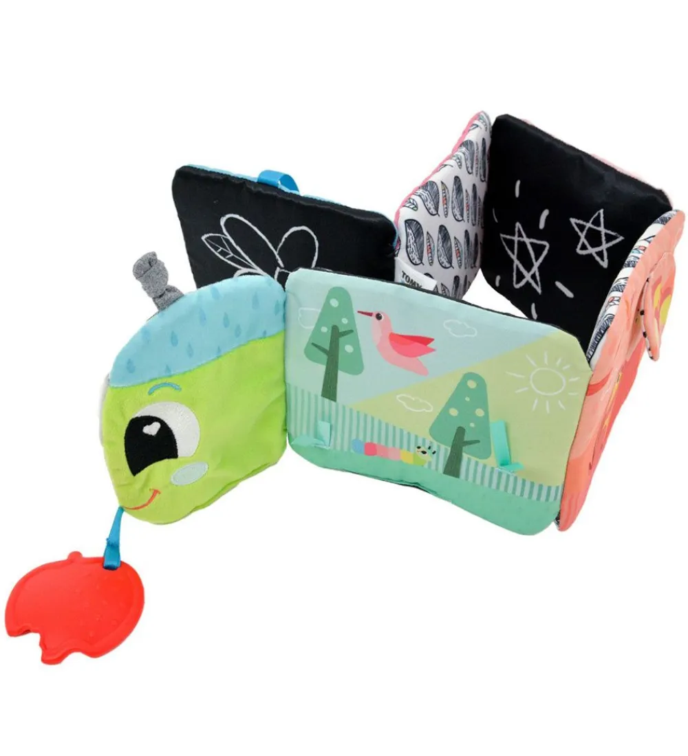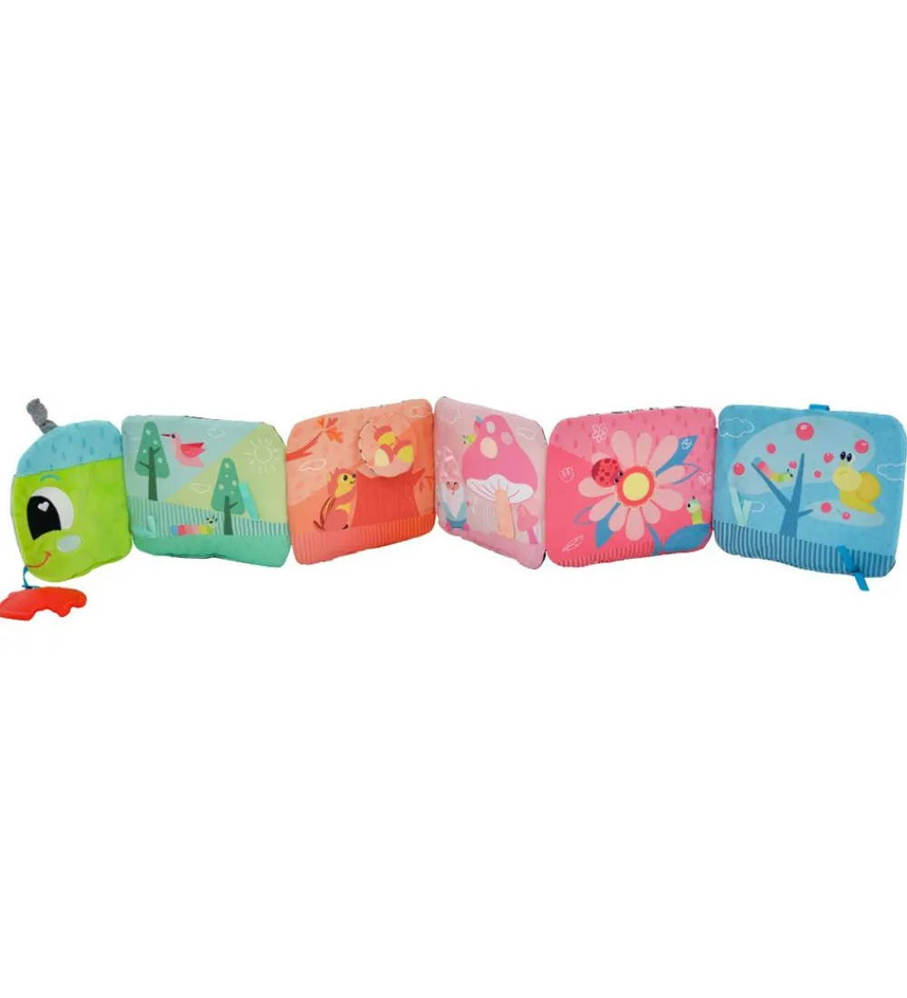 Sød Lamaze stofbog i alle regnbuens farver og med en kålorm på forsiden.