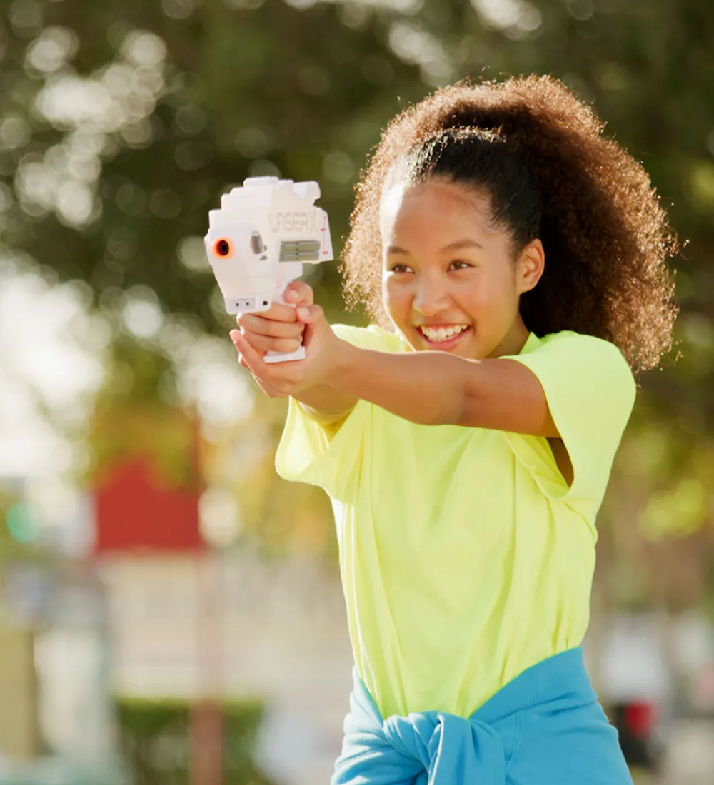 Med Laser X legetøjet kan man spille med et ubegrænset antal spillere, hvilket fremmer konkurrence og samarbejde. De har en rækkevidde på 300 fod/90 meter, og når man bliver ramt, kan man se hvem der ramte dig på selve blasterne. Blasternes har over 20 farvekombinationer og kan spilles med både dag og nat, og ude og inde.