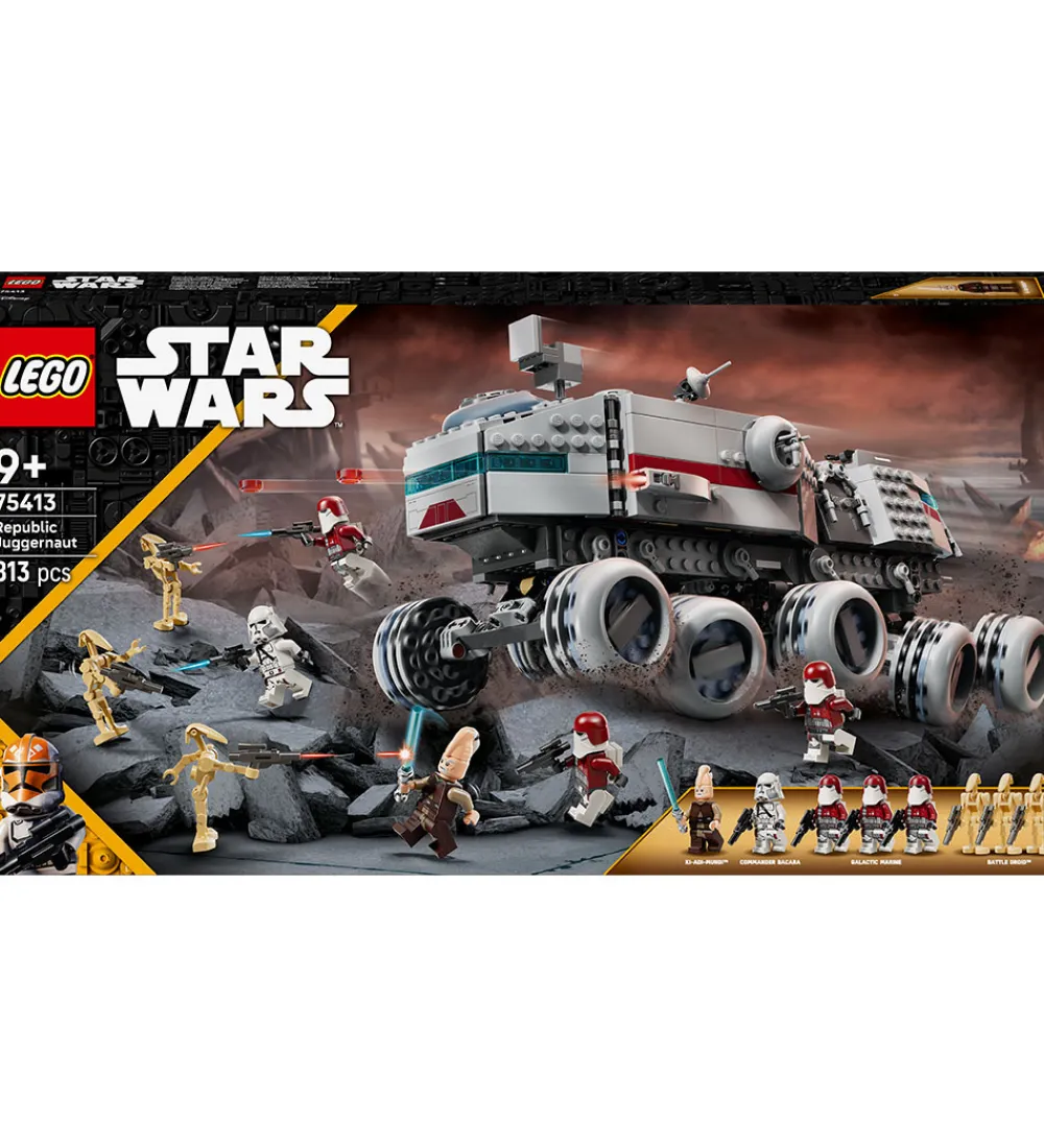 Imponerende LEGO® Star Wars sæt med i alt 813 klodser, som kan samles til en detaljeret model af Republic Juggernaut. Sættet indeholder bevægelige hjul, cockpit og kanoner, samt hele 10 minifigurer: Luminara Unduli, Quinlan Vos, Clone Commander Gree, Clone Trooper, to Kashyyyk Clone Troopers og fire Battle Droids.