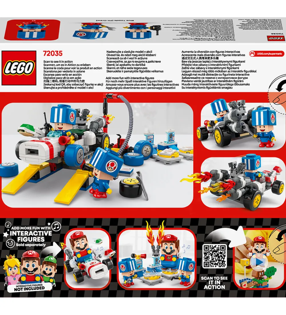 Fedt LEGO® Super Mario sæt med i alt 390 klodser, som samles til dette Mario Kart Toads garage-sæt.