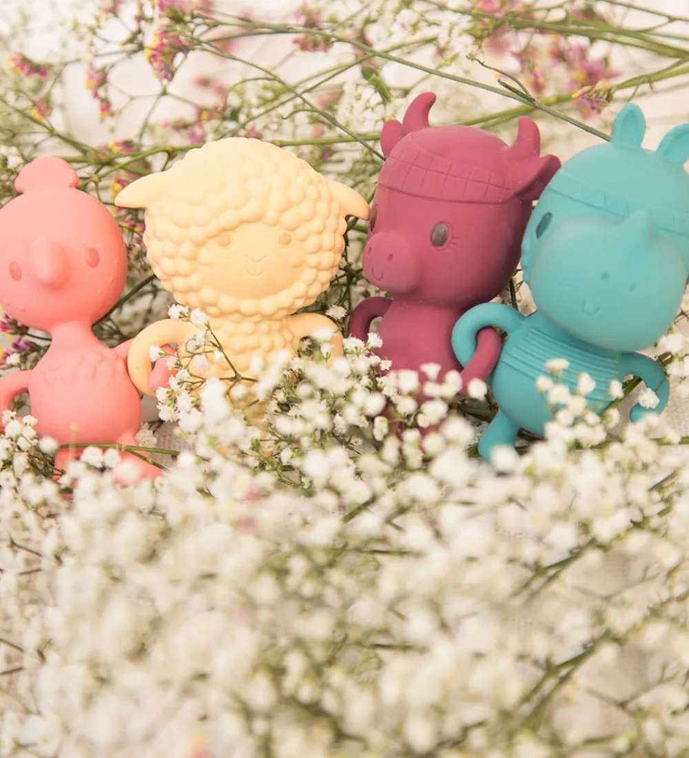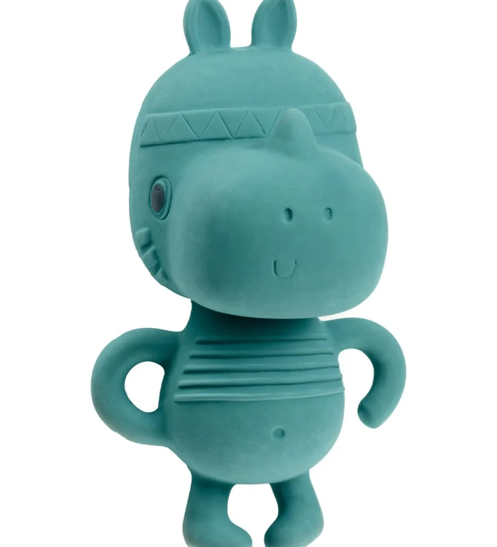 Fin Lilliputiens rangle i ensfarvet blå. Ranglen er formet som et næsehorn med et sødt ansigt.