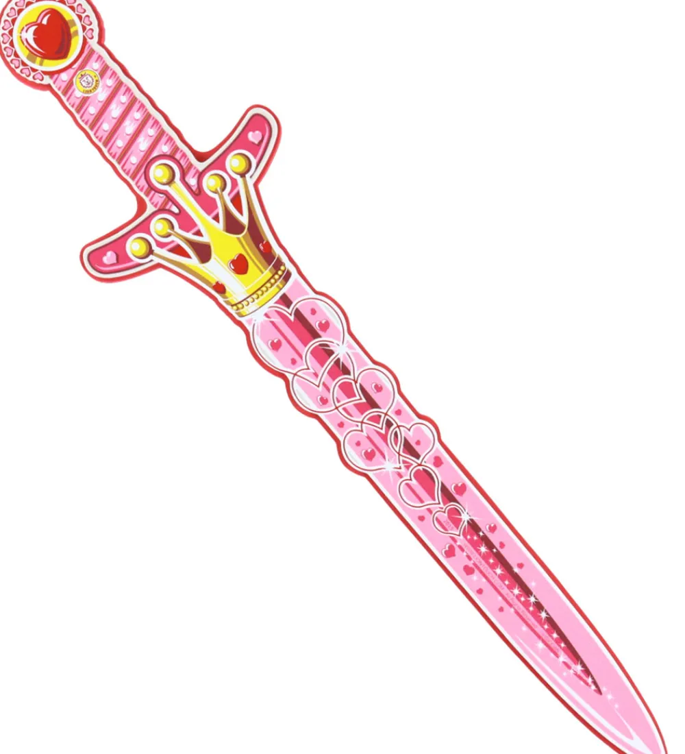 Flot Liontouch prinsessesværd i rosa nuancer med print af en stor prinsessekrone på begge sider og rosa og røde hjerter. Prinsessesværdet er fremstillet i fleksibelt materiale, og kan bruges som en del af en udklædning.