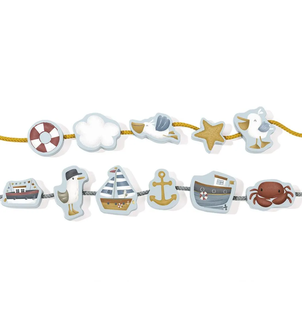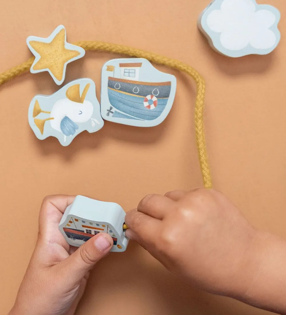 Little Dutch aktivitetslegetøjet består af 2 snore og 11 små figurer. I alle figurene er der et hul i hver ende, så snorene kan trækkes igennem alle figurene. Barnet træner herved sin finmotorik og koncentrationsevne. Med aktivitetslegetøjet er der lagt op til mange timer med leg, hvor barnet kan udfolde sig kreativt.