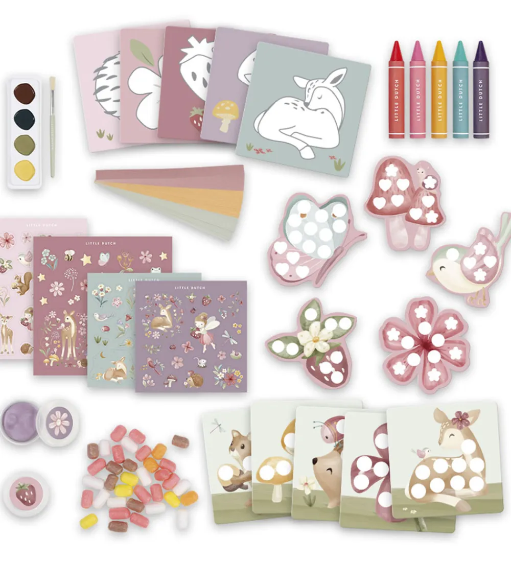 Sjov Little Dutch kreativitetsæske med et hyggeligt fehave-tema. Kreativitetsæsken indeholder mere end 50 dele, heriblandt maling, farvekridt, klistermærker, ler og meget mere.