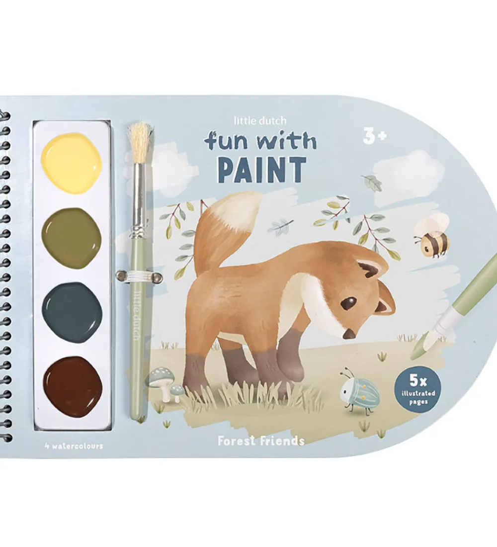 Little Dutch malebogen inkluderer fem sider med tegninger, som kan males og 25 blanke sider. Malebogen har fire vandfarver og kommer med en pensel. Malebogen er perfekt til kreative stunder.