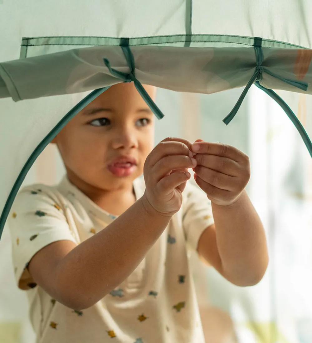 Little Dutch legeteltet har en rund facon med mulighed for at åbne siderne på forskellige måder. Legeteltet skaber en hyggelig legehule, som indbyder til leg og hyggestunder.
