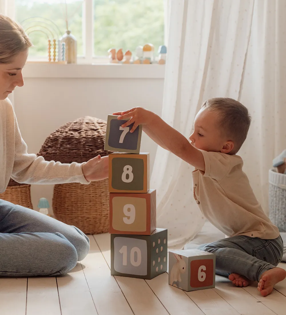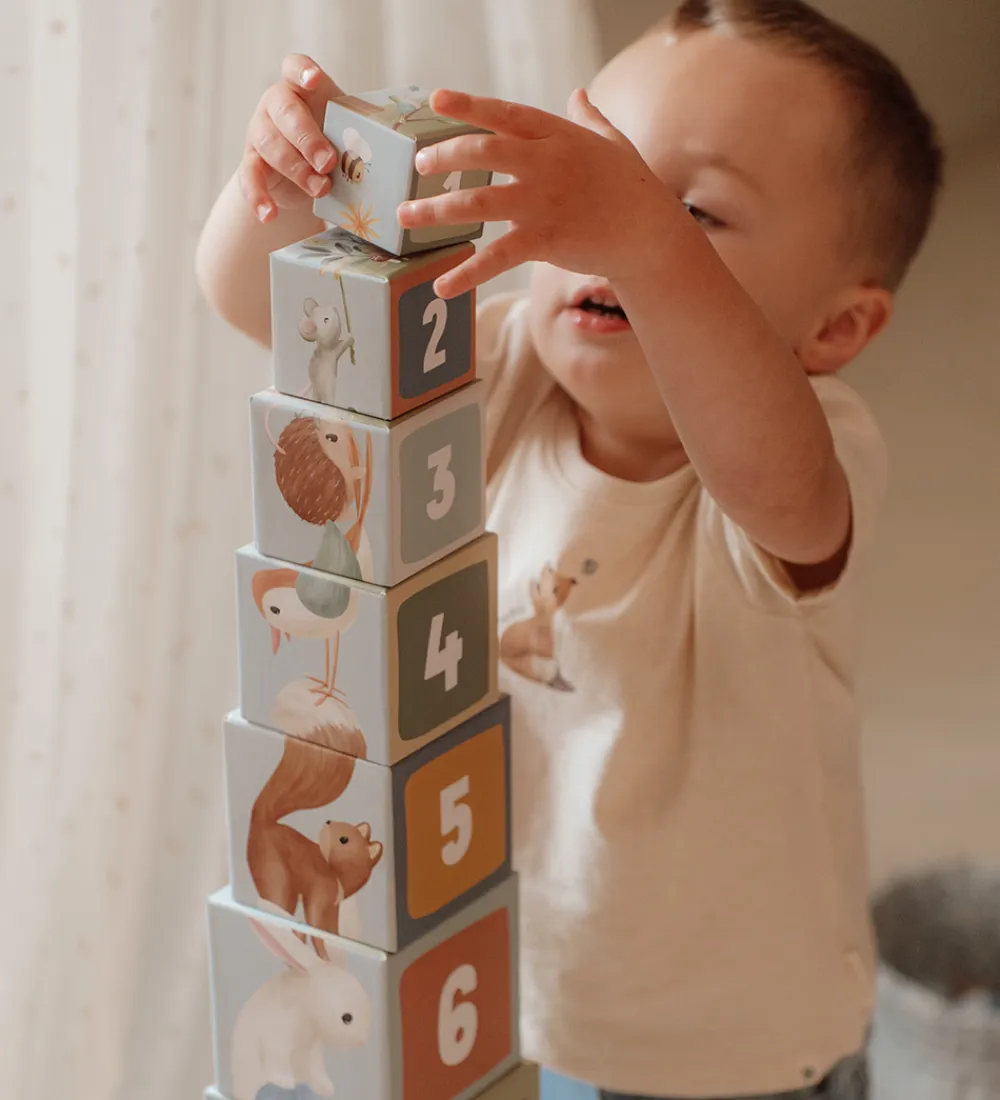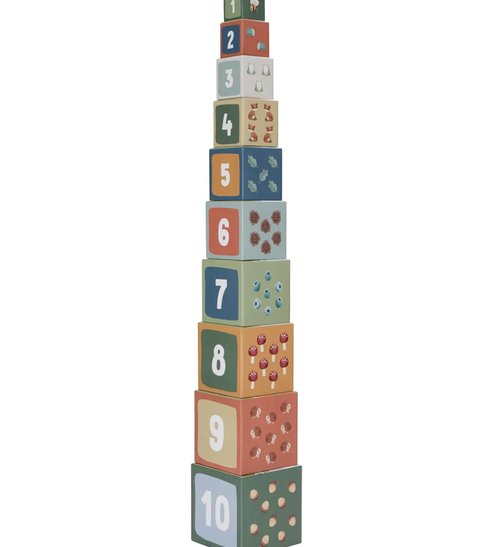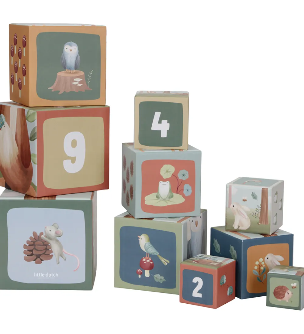 Flot Little Dutch stabletårn bestående af 10 firkantede klodser, der har motiver fra skoven.