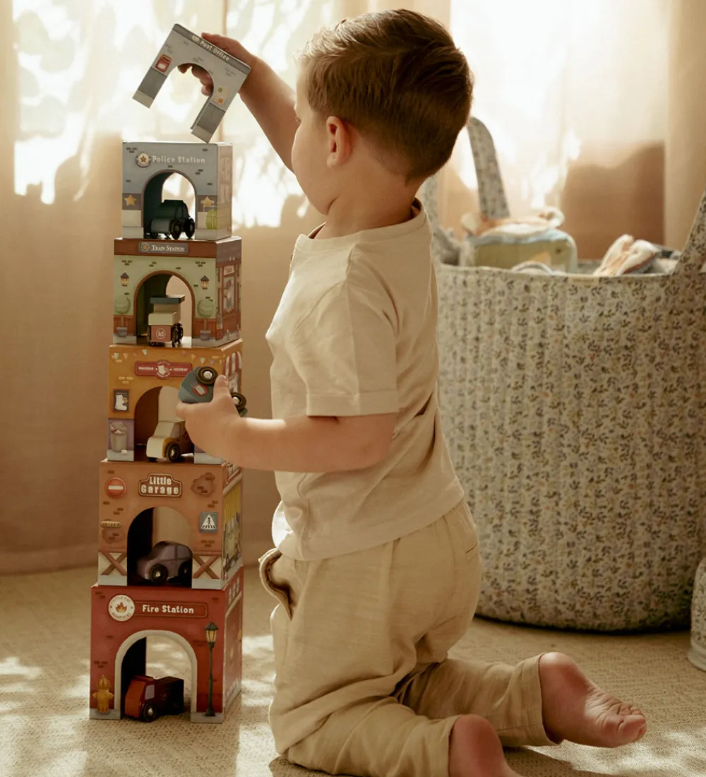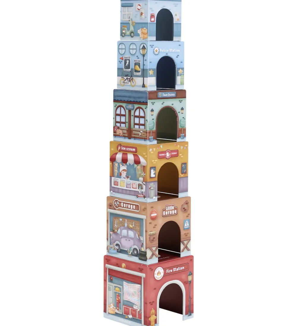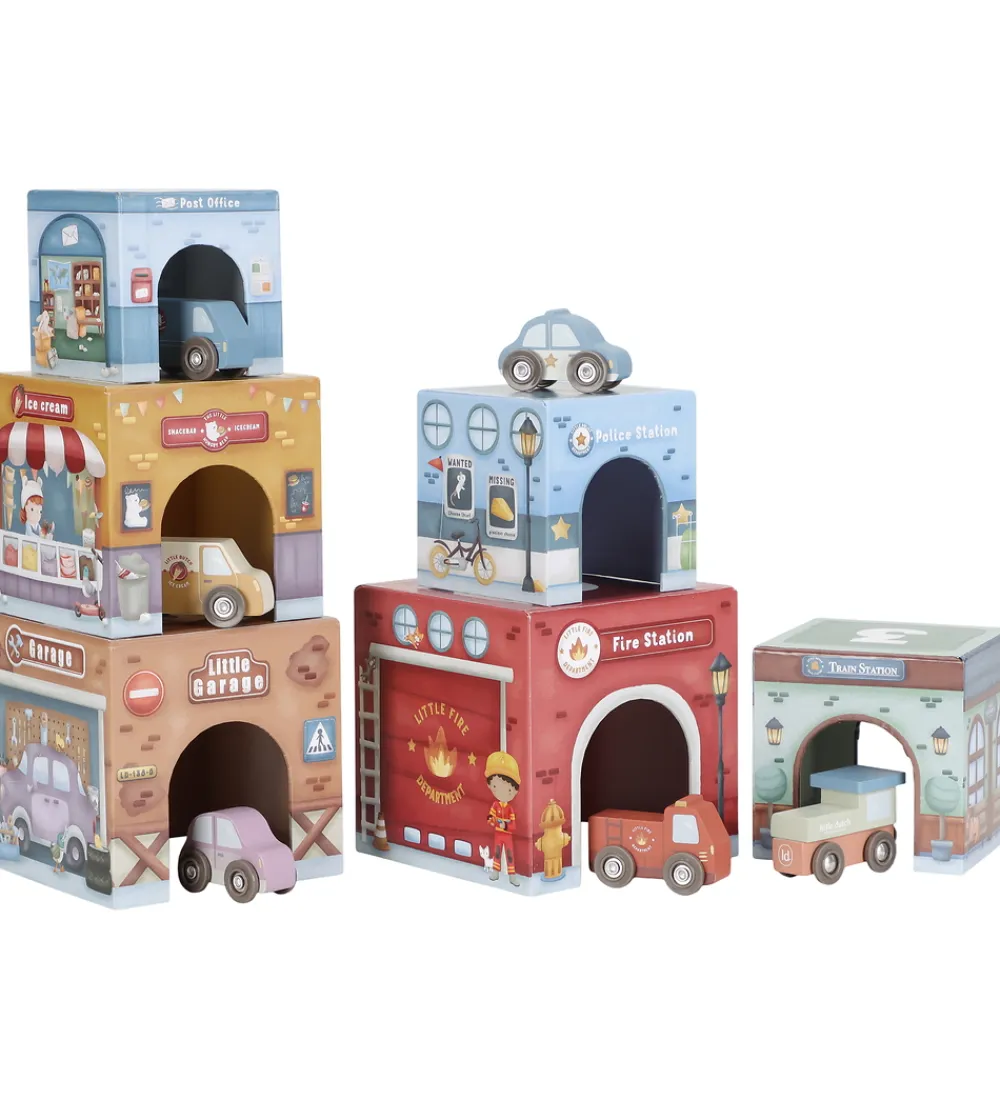 Underholdende Little Dutch stablelegetøj bestående af seks farverige pap-bygninger med matchende køretøjer, herunder blandt andet en brandstation, politistation og isbutik. De detaljerede print og de levende farver gør Little Dutch-legetøjet til en sjov oplevelse for de små.